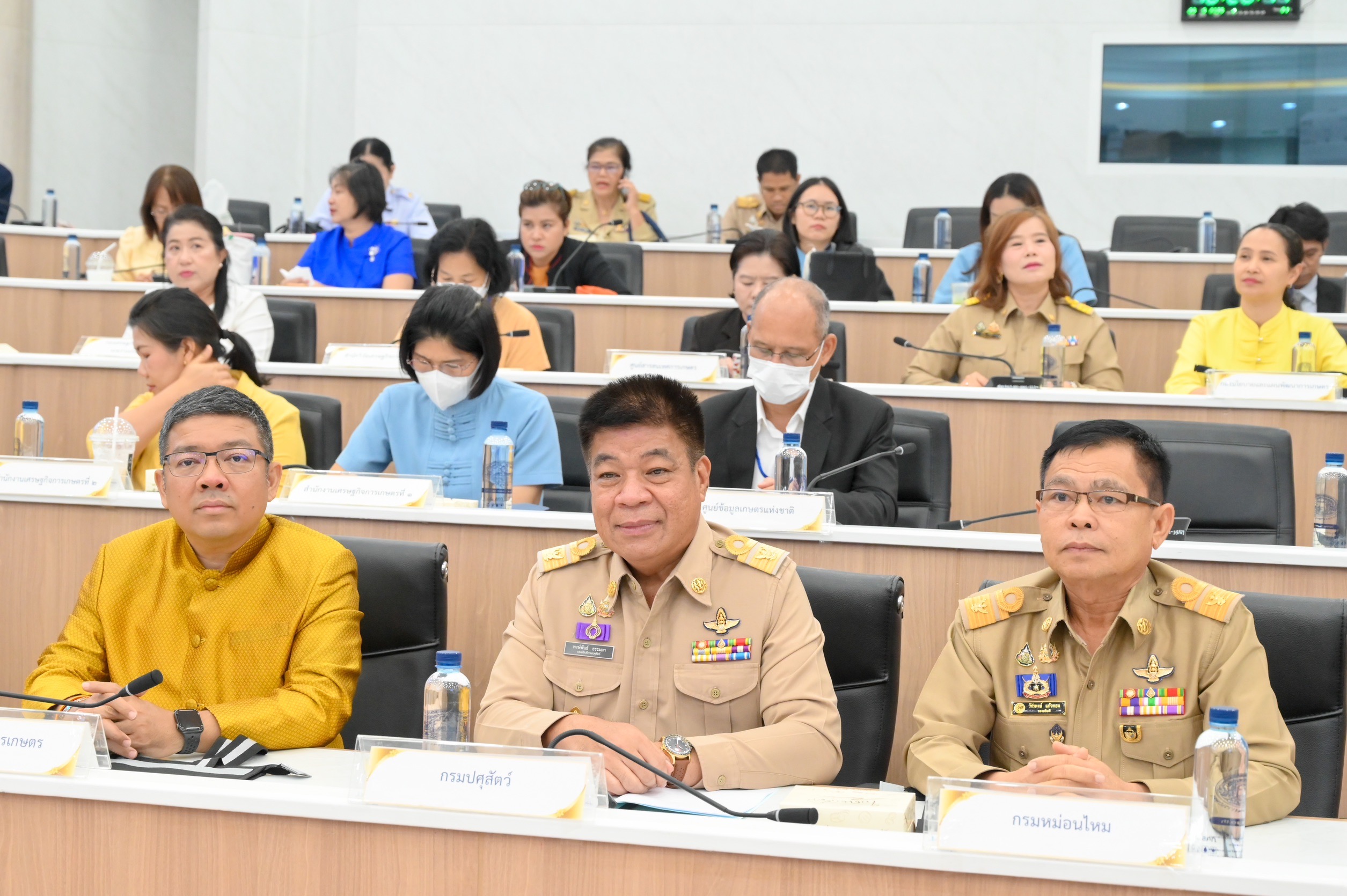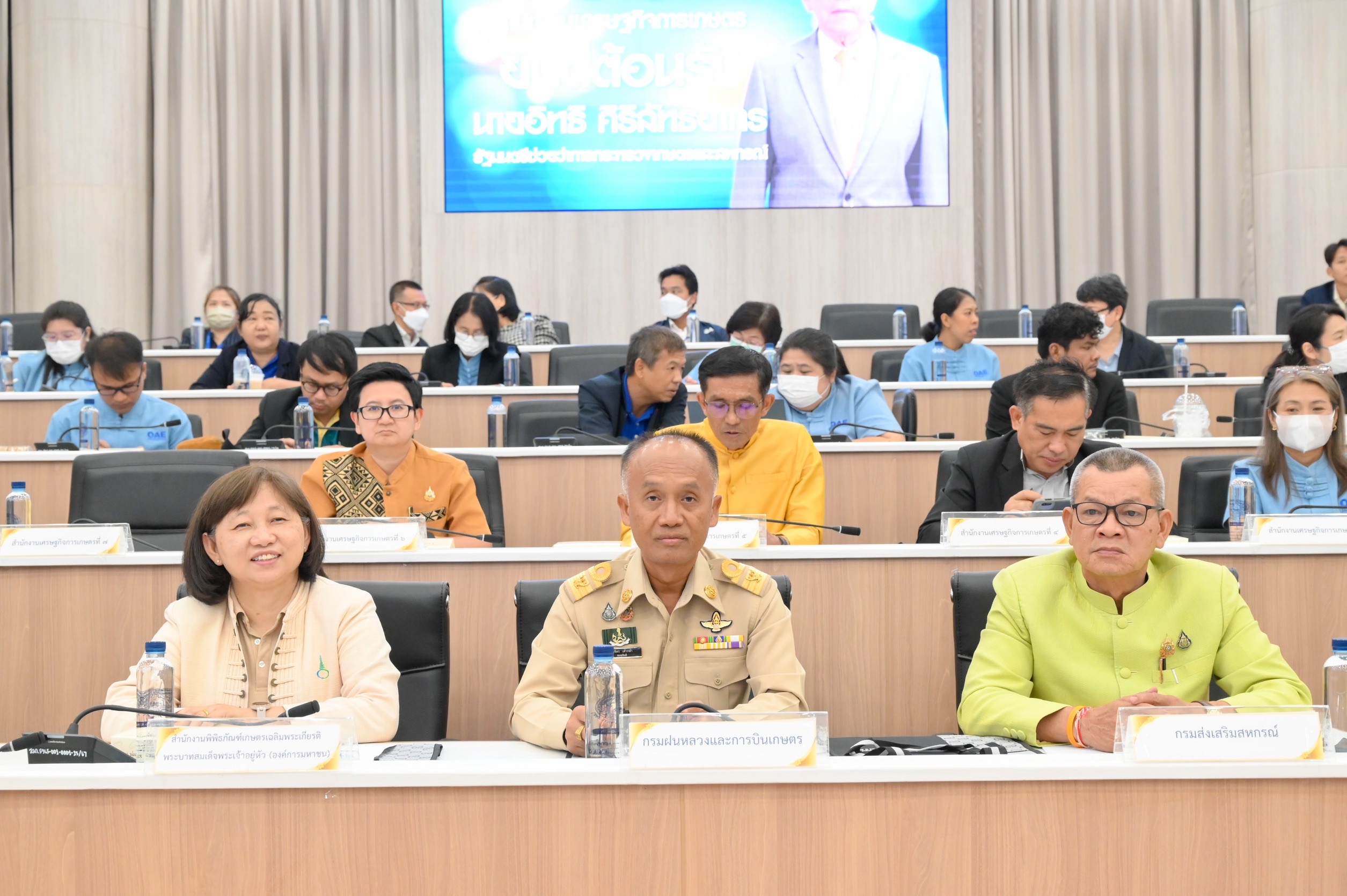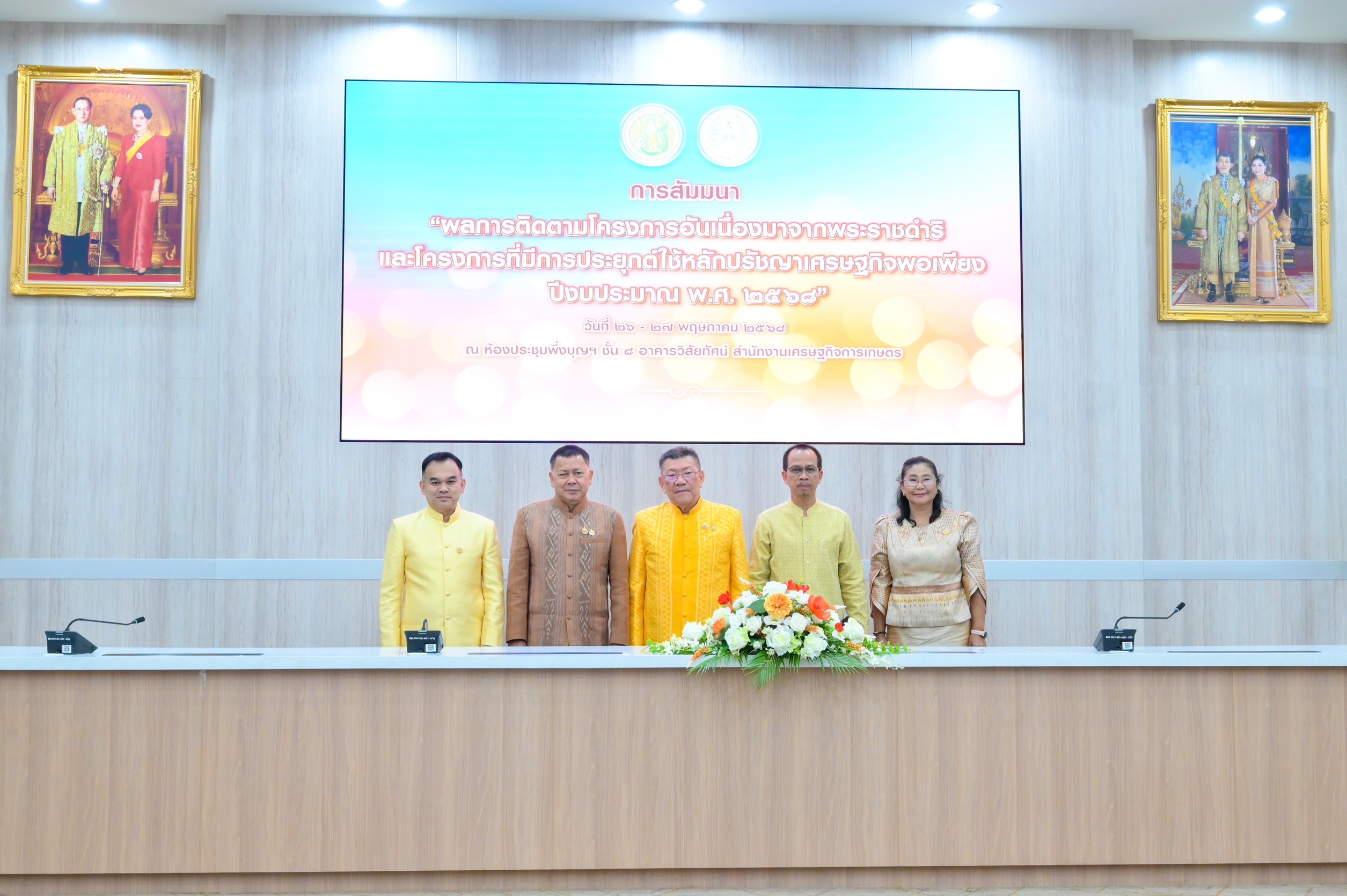วันที่ 26 พฤษภาคม 2568 นายสัตวแพทย์สมชวน รัตนมังคลานนท์ อธิบดีกรมปศุสัตว์ มอบหมายให้นายพงษ์พันธ์ ธรรมมา รองอธิบดีกรมปศุสัตว์ และเจ้าหน้าที่กองงานพระราชดำริและกิจกรรมพิเศษ เป็นผู้แทนกรมปศุสัตว์เข้าร่วมสัมมนาผลการติดตามโครงการอันเนื่องมาจากพระราชดำริ และโครงการที่มีการประยุกต์ใช้หลักปรัชญาเศรษฐกิจพอเพียง ปีงบประมาณ พ.ศ. 2568 โดยมีนายอิทธิ ศิริลัทธยากร รัฐมนตรีช่วยว่าการกระทรวงเกษตรและสหกรณ์ เป็นประธานในพิธีเปิดสัมมนาฯ พร้อมด้วยนายอาดิลัน อาลีอิสเฮาะ ที่ปรึกษารัฐมนตรีช่วยว่าการกระทรวงเกษตร นายประยูร อินสกุล ปลัดกระทรวงเกษตรและสหกรณ์ ผู้บริหารในสังกัดกระทรวงเกษตรและสหกรณ์ และเจ้าหน้าที่ที่เกี่ยวข้อง เข้าร่วมเพื่อทราบผลการติดตามการดำเนินงานโครงการอันเนื่องมาจากพระราชดำริ รับฟังข้อคิดเห็น/ข้อเสนอแนะโครงการ เยี่ยมชมนิทรรศการผลการดำเนินงานโครงการอันเนื่องมาจากพระราชดำริ พร้อมร่วมรับฟังการเสวนาหัวข้อ "บทเรียนความสำเร็จโครงการอันเนื่องมาจากพระราชดำริ" และ "การติดตามการดำเนินงานโครงการอันเนื่องมาจากพระราชดำริ และโครงการที่มีการประยุกต์ใช้หลักปรัชญาเศรษฐกิจพอเพียงแบบการบูรณาการเชิงพื้นที่" ให้มีความครบถ้วน ถูกต้อง สมบูรณ์ยิ่งขึ้น เกิดบูรณาการและสร้างเครือข่ายความร่วมมือระหว่างสำนักงานเศรษฐกิจการเกษตร และหน่วยงานที่เกี่ยวข้อง ระหว่างวันที่ 26 - 27 พฤษภาคม 2568 ณ ห้องประชุมพึ่งบุญฯ ชั้น 8 อาคารวิสัยทัศน์ สำนักงานเศรษฐกิจการเกษตร ทั้งนี้สามารถรับชมการถ่ายทอดสดผ่าน FB Live "เศรษฐกิจการเกษตรเพื่อประชาชน"