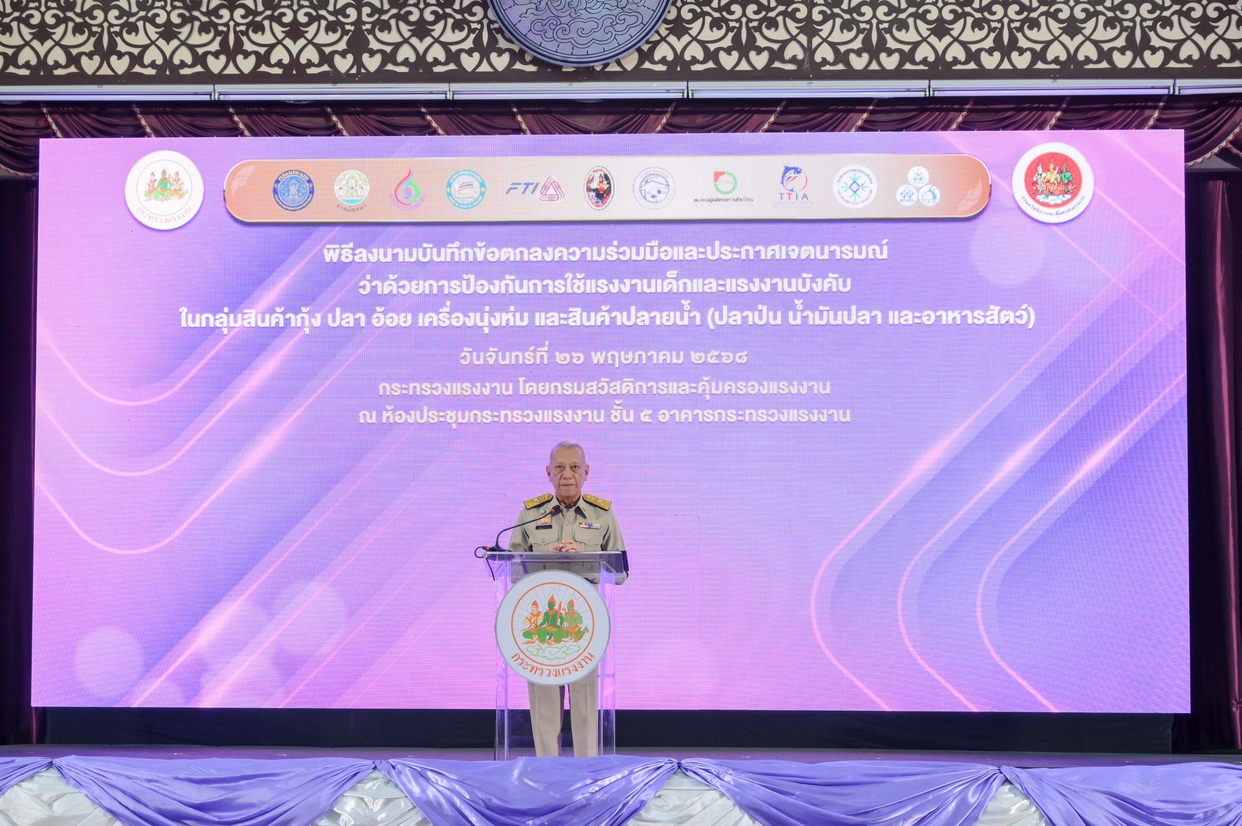 รอธ.พงษ์พันธ์ฯ เข้าร่วมพิธีลงนามบันทึกข้อตกลง ความร่วมมือและประกาศเจตนารมณ์ว่าด้วยการป้องกันการใช้แรงงานเด็กและแรงงานบังคับในกลุ่มสินค้ากุ้ง ปลา อ้อย เครื่องนุ่งห่ม และสินค้าปลายน้ำ (ปลาป่น น้ำมันปลา และอาหารสัตว์)