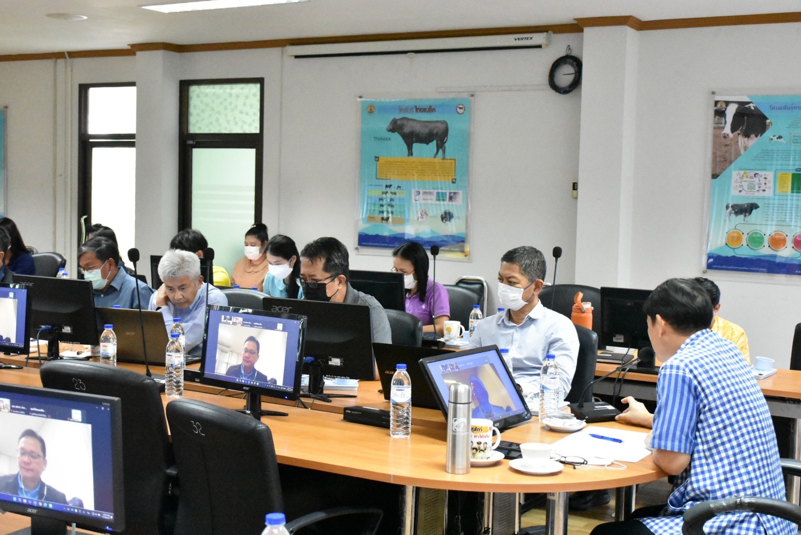 วันอังคารที่ 27 พฤษภาคม 2568 เวลา 09.00 น. นายสัตวแพทย์บุญญกฤช ปิ่นประสงค์ รองอธิบดีกรมปศุสัตว์ เป็นประธานการประชุมมอบนโยบายการขับเคลื่อนการดำเนินงานด้านโคนม โดยมีนายชุมพล บุญรอด ผู้อำนวยการสำนักเทคโนโลยีชีวภาพการผลิตปศุสัตว์ ปศุสัตว์เขต 1-9 ผู้อำนวยการศูนย์วิจัยการผสมเทียมและเทคโนโลยีชีวภาพ พร้อมด้วยเจ้าหน้าที่ที่เกี่ยวข้องทั้งส่วนกลางและภูมิภาคเข้าร่วมประชุม