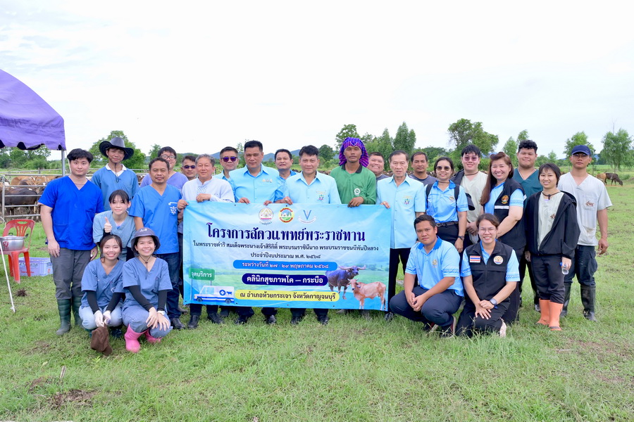 ในปีงบประมาณ พ.ศ.2568 กรมปศุสัตว์ได้บูรณาการความร่วมมือระหว่างหน่วยงานด้านปศุสัตว์ ในการพัฒนาบริการด้านสุขภาพสัตว์ ได้กำหนดจัดให้มีการดำเนินการโครงการสัตวแพทย์พระราชทานในพระราชดำริ สมเด็จพระนางเจ้าสิริกิติ์ พระบรมราชินีนาถ พระบรมราชชนนีพันปีหลวง ขึ้นในพื้นที่จังหวัดกาญจนบุรี โดยให้บริการในเขตพื้นที่อำเภอห้วยกระเจา ซึ่งมีเป้าหมายการให้บริการเกษตรกรจำนวนไม่น้อยกว่า 250 ราย สัตว์เลี้ยงได้รับการดูแลสุขภาพ จำนวน 4,200 ตัว ได้แก่ สุนัขและแมว จำนวน 400 ตัว โคและกระบือ จำนวน 1,000 ตัว แพะและแกะ จำนวน 300 ตัว และสัตว์ปีก จำนวน 2,500 ตัว โดยมีคณาจารย์ นิสิต นักศึกษา สัตวแพทย์ และนักวิชาการจากส่วนกลางและส่วนภูมิภาคร่วมปฏิบัติงาน กำหนดดำเนินการ