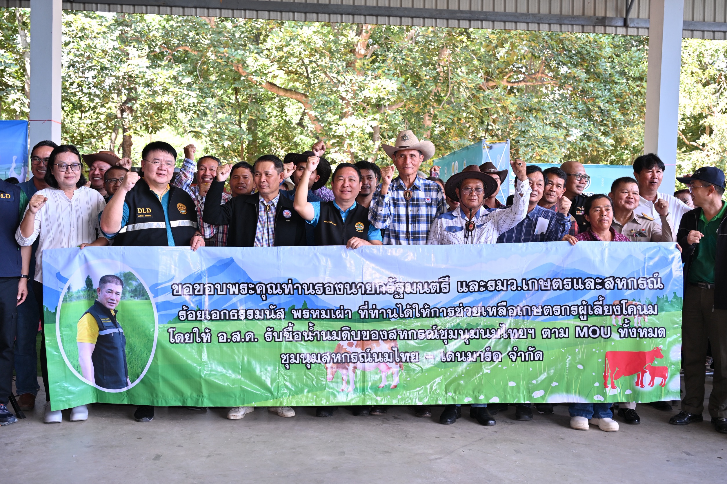 วันอาทิตย์ที่ 5 ตุลาคม 2568 เวลา 10.00 น. นายสัตวแพทย์สมชวน รัตนมังคลานนท์ อธิบดีกรมปศุสัตว์ พร้อมสัตวแพทย์หญิงบุณิกา จุลละโพธิ ผู้อำนวยการกองการเจ้าหน้าที่ ติดตามคณะ รองนายกรัฐมนตรี และรัฐมนตรีว่าการกระทรวงเกษตรและสหกรณ์ (ร้อยเอก ธรรมนัส พรหมเผ่า) ลงพื้นที่ตรวจราชการในพื้นที่จังหวัดนครราชสีมา พร้อมพบปะพี่น้องเกษตรกร และมอบสิ่งของปัจจัยการผลิตด้านการเกษตร ซึ่งในส่วนของกรมปศุสัตว์ได้ร่วมมอบปัจจัยการผลิตทางด้านปศุสัตว์แก่ตัวแทนเกษตรกรที่มาร่วมงานฯ ได้แก่ มอบอาหารสัตว์ TMR มอบถุงยังชีพด้านปศุสัตว์ มอบเมล็ดพันธุ์หญ้าอาหารสัตว์ มอบเสบียงอาหารสัตว์พระราชทาน และได้ส่งเสริมและรณรงค์การบริโภคไข่ไก่ โดยการแจกไข่ไก่ให้แก่เกษตรกรที่มาร่วมงานฯ โดยมีผู้บริหารทุกหน่วยงานในสังกัดกระทรวงเกษตรและสหกรณ์ นายสัตวแพทย์อดิศร ชาติสุภาพ ปศุสัตว์เขต 3 นายสัตวแพทย์พศวีร์ สมใจ ปศุสัตว์จังหวัดนครราชสีมา นายพีรศักดิ์ ไชยชนะแสง ปศุสัตว์จังหวัดชัยภูมิ นายสัตวแพทย์จักรกริศน์ ไกรสนธิ์ หัวหน้าด่านกักกันสัตว์นครราชสีมา และเจ้าหน้าที่ในสังกัด ให้การต้อนรับ ณ โรงเรียนมัธยมด่านขุนทด ตำบลด่านขุนทด อำเภอด่านขุนทด จังหวัดนครราชสีมา ภาพ : นายธงชัย สาลี ข่าว : คุณจิราภรณ์ เกตุบูรณะ / กลุ่มเผยแพร่ฯ / สลก. / กรมปศุสัตว์