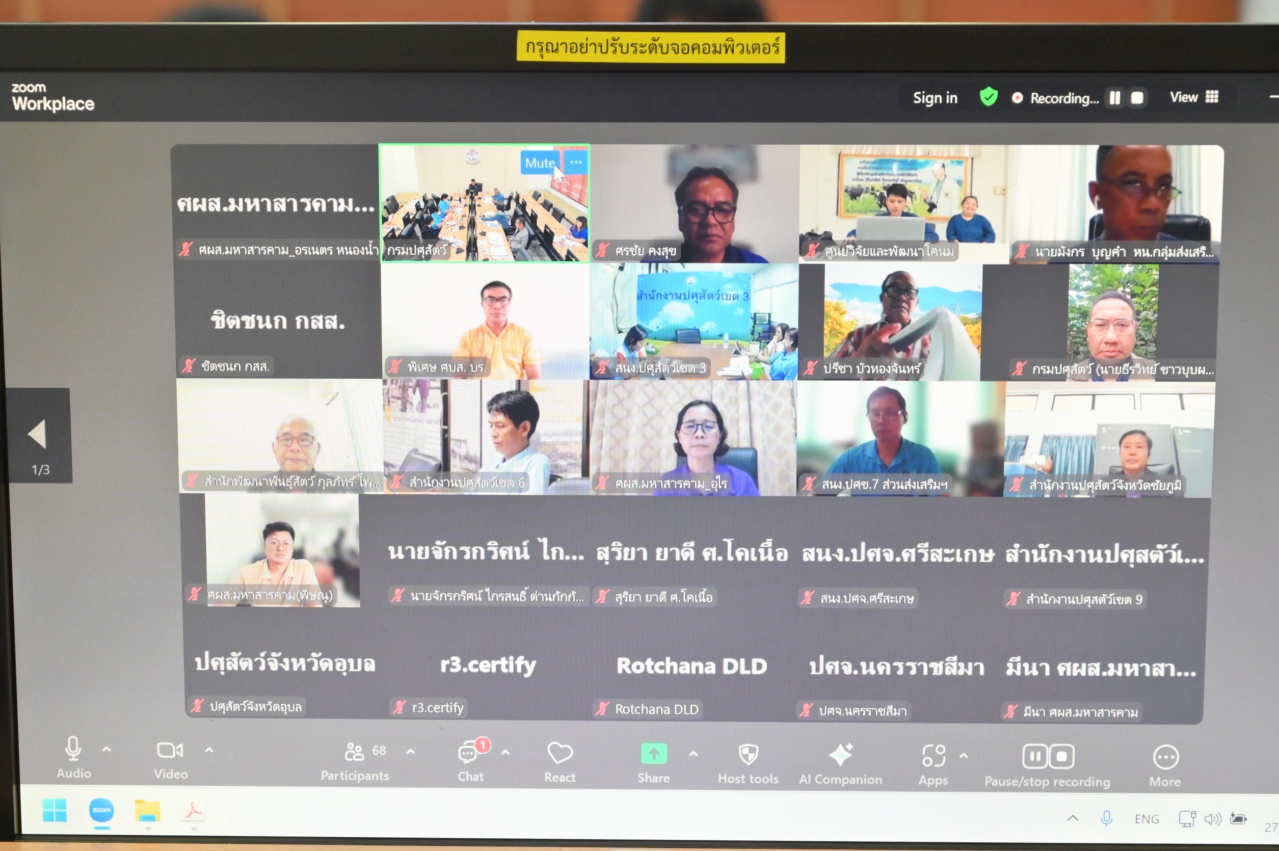 วันที่ 27 มิถุนายน 2568 เวลา13.00น. นายพงษ์พันธ์ ธรรมมา รองอธิบดีกรมปศุสัตว์ เป็นประธานการประชุมคณะกรรมการอำนวยการและคณะทำงานจัดกิจกรรมงานวันอนุรักษ์และพัฒนากระบือปลักไทย ประจำปี พ.ศ. 2569 โดยมีนายทองทวี ดีมะการ ที่ปรึกษาโครงการธนาคารโค-กระบือเพื่อเกษตรกร ตามพระราชดำริ นายธีรวิทย์ ขาวบุบผา ผู้อำนวยการกองงานพระราชดำริและกิจกรรมพิเศษ และคณะทำงานชุดต่างๆ เข้าร่วมประชุมฯ ณ ห้องประชุมพระพิรุณ ชั้น 1 ตึกอำนวยการ กรมปศุสัตว์ และประชุมผ่านระบบทางไกล (Zoom Conference)