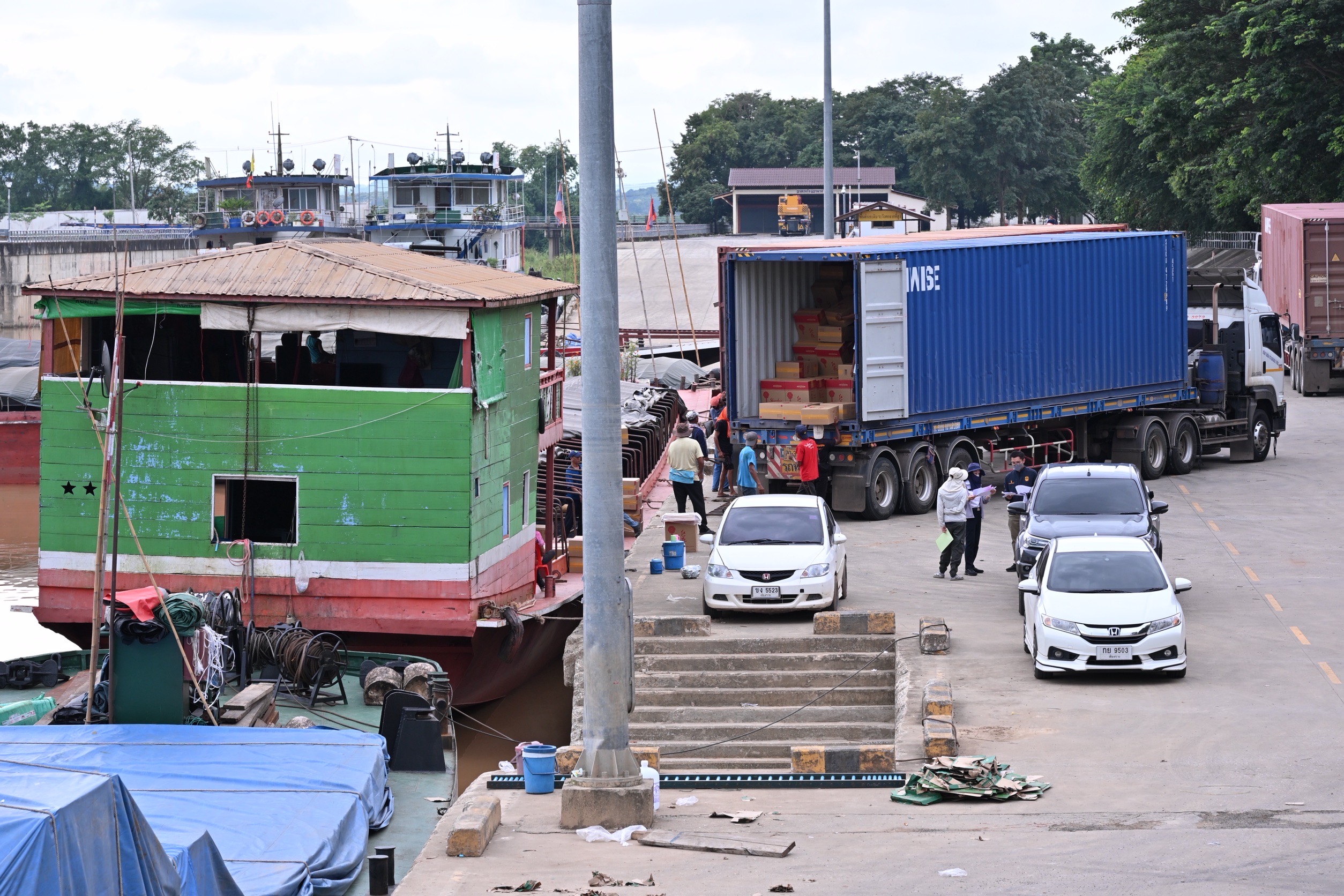 สำหรับเส้นทางรองรับการค้าด้านปศุสัตว์ ไทย-ลาว-จีน ขนส่งทางน้ำ ประกอบด้วย 3 ท่าเรือ ดังนี้ 1) ท่าปศุสัตว์เชียงแสน ด่านกักกันสัตว์เชียงราย เป็นสถานที่ดำเนินการของผู้ส่งออกสินค้าเกษตร เช่น สัตว์มีชีวิต (โค กระบือ และสุกร) 2) ท่าเรือห้าเชียงเทรดดิ้ง อำเภอเชียงแสน ท่าขนถ่ายสินค้าชนิดผลิตภัณฑ์สินค้าปศุสัตว์ ของเอกชน และ 3) ท่าเรือพาณิชย์เชียงแสน ด่านกักกันสัตว์เชียงราย เป็นท่าส่งออกสัตว์มีชีวิต (สุกร) และผลิตภัณฑ์สินค้าปศุสัตว์