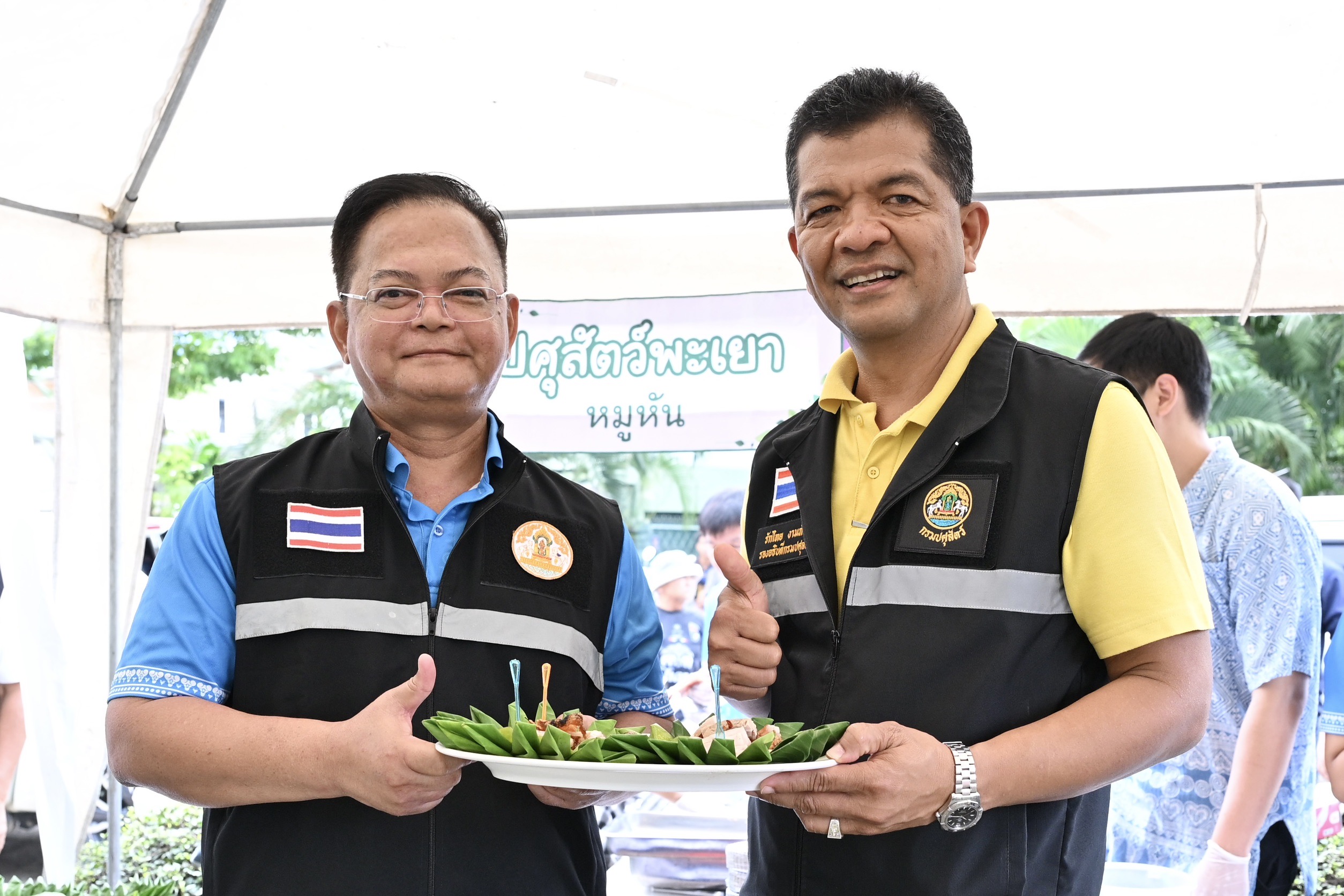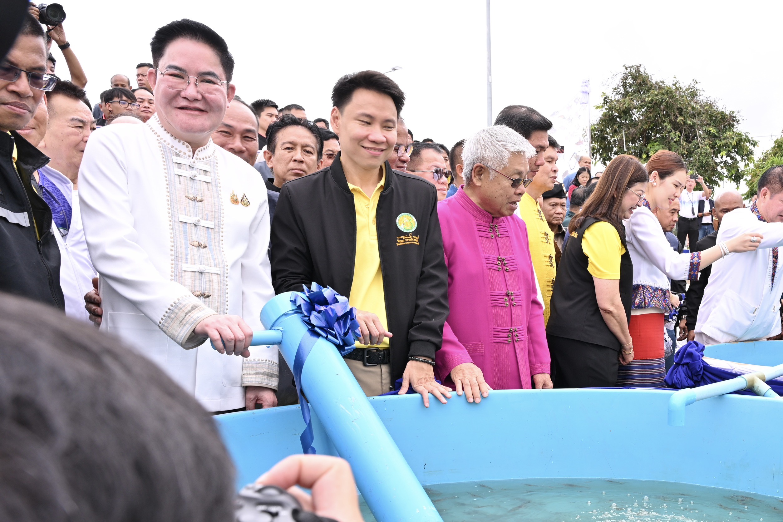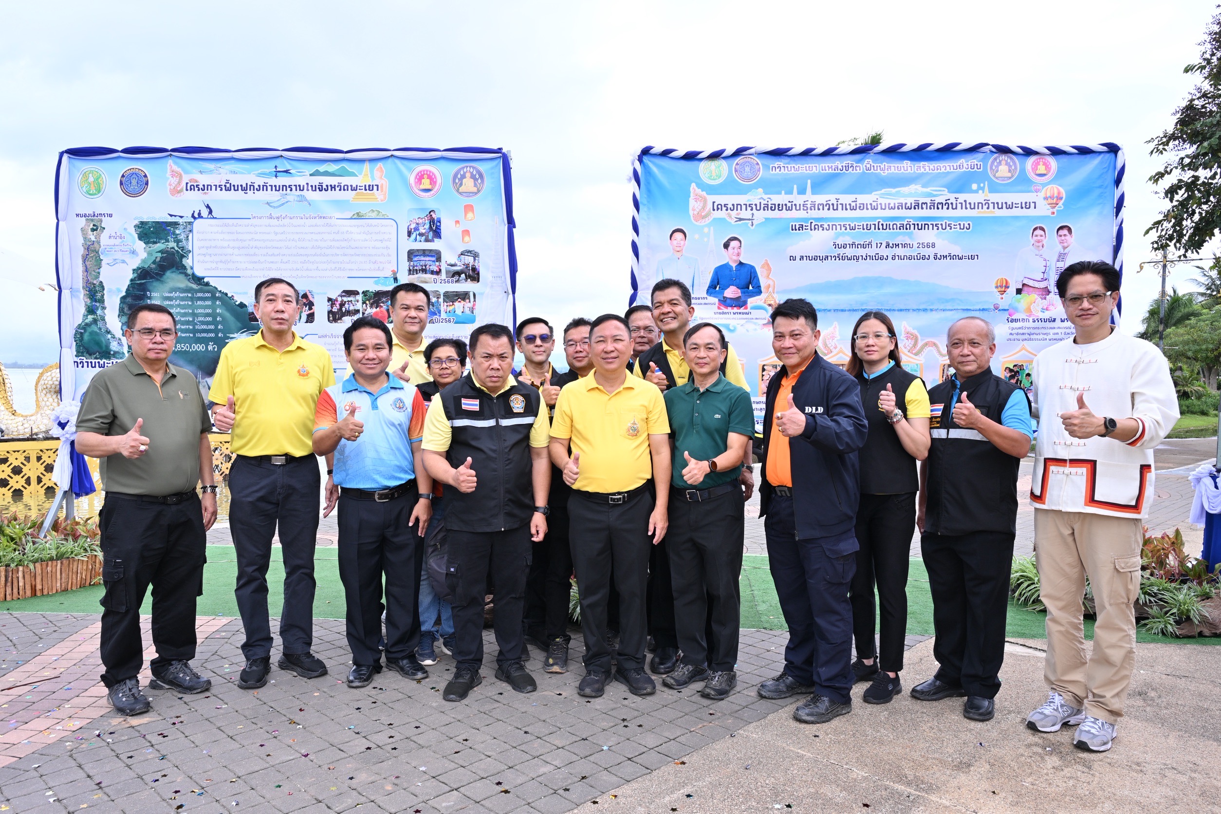 วันอาทิตย์ที่ 17 สิงหาคม 2568 เวลา 08.30 น. นายสัตวแพทย์สมชวน รัตนมังคลานนท์ อธิบดีกรมปศุสัตว์ พร้อมด้วยนายสัตวแพทย์โสภัชย์ ชวาลกุล นายสัตวแพทย์บุญญกฤช ปิ่นประสงค์ นายสัตวแพทย์รักไทย งามภักดิ์ รองอธิบดีกรมปศุสัตว์ และคณะผู้บริหารกรมปศุสัตว์ ร่วมติดตามคณะ นายอรรถกร ศิริลัทธยากร รัฐมนตรีว่าการกระทรวงเกษตรและสหกรณ์ และนายอัครา พรหมเผ่า รัฐมนตรีช่วยว่าการกระทรวงเกษตรและสหกรณ์ ลงพื้นที่ตรวจราชการจังหวัดพะเยา และเป็นประธานในพิธีปล่อยพันธุ์สัตว์น้ำสู่กว๊านพะเยา พร้อมเยี่ยมชมนิทรรศการภายในงาน โดยมีผู้บริหารในสังกัดกระทรวงเกษตรและสหกรณ์ ปศุสัตว์จังหวัดและเจ้าหน้าที่ปศุสัตว์ในพื้นที่เขต 5 เกษตรกร และเจ้าหน้าที่ที่เกี่ยวข้อง เข้าร่วมงานฯ ณ ลานอนุสาวรีย์พ่อขุนงำเมือง อำเภอเมือง จังหวัดพะเยาภาพ : คุณธงชัย สาลี ข่าว : คุณจิราภรณ์ เกตุบูรณะ / กลุ่มเผยแพร่ฯ / สลก. / กรมปศุสัตว์