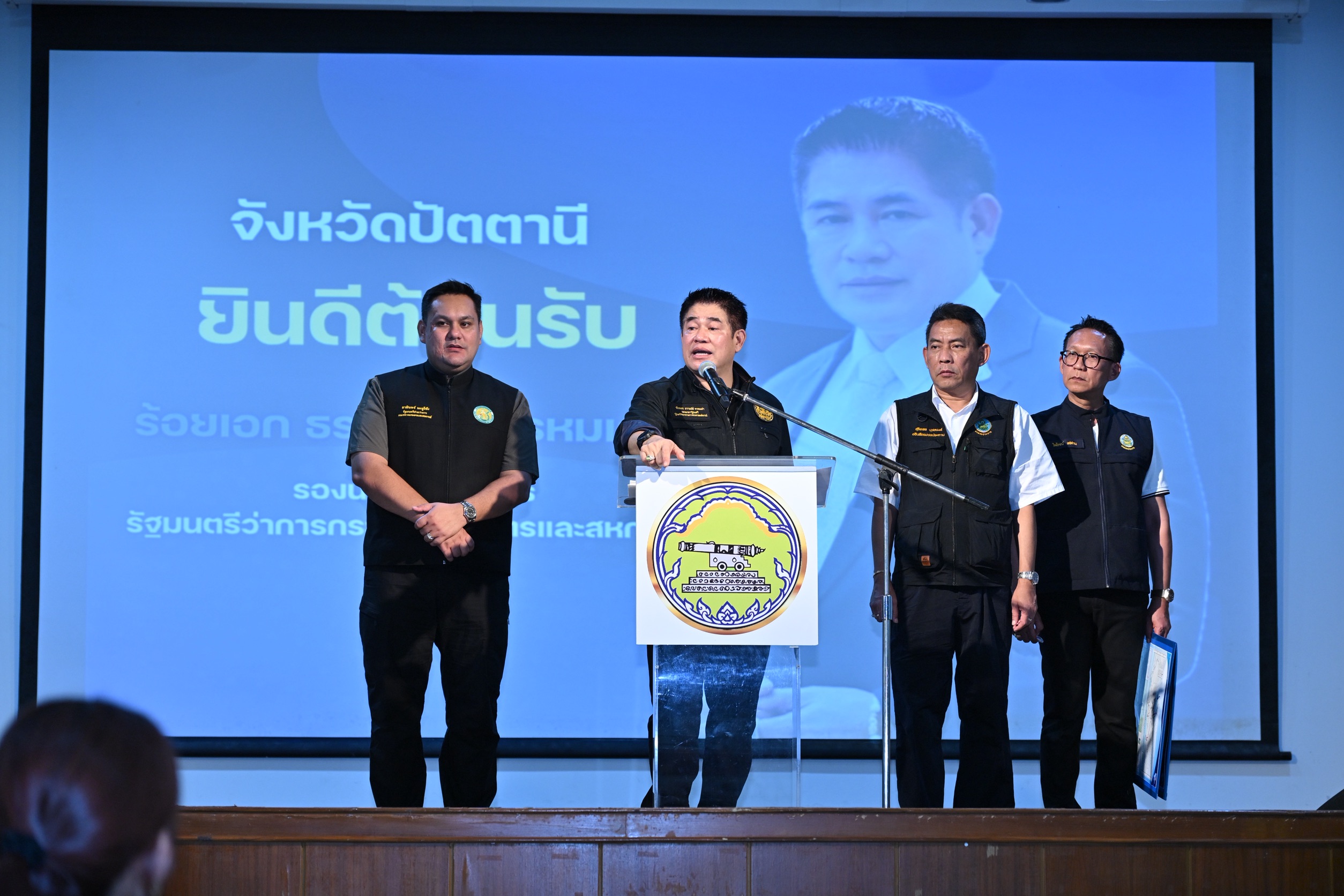 วันเสาร์ที่ 8 พฤศจิกายน 2568 นายสัตวแพทย์สมชวน รัตนมังคลานนท์ อธิบดีกรมปศุสัตว์ มอบหมายให้ นายสัตวแพทย์รักไทย งามภักดิ์ รองอธิบดีกรมปศุสัตว์ ร่วมติดตามคณะ ร้อยเอกธรรมนัส พรหมเผ่า รองนายกรัฐมนตรี และรัฐมนตรีว่าการกระทรวงเกษตรและสหกรณ์ นายอามินทร์ มะยูโซ๊ะ รัฐมนตรีช่วยว่าการกระทรวงเกษตรและสหกรณ์ ลงพื้นที่ตรวจราชการ พร้อมกล่าวมอบนโยบายฯ พบปะประชาชน และรับฟังปัญหาความเดือดร้อน โดยมีผู้บริหารในสังกัดกระทรวงเกษตรและสหกรณ์ ปศุสัตว์เขต 9 ปศุสัตว์จังหวัดปัตตานี เกษตรกร และเจ้าหน้าที่ที่เกี่ยวข้อง เข้าร่วมฯ ณ อำเภอเมือง จังหวัดปัตตานี
