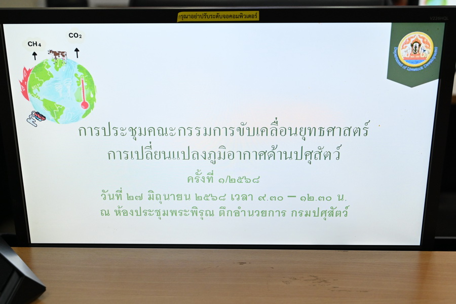 วันศุกร์ที่ 27 มิถุนายน 2568 เวลา 10.00 น. นายสัตวแพทยสมชวน รัตนมังคลานนท์ อธิบดีกรมปศุสัตว์ มอบหมายให้นายสัตวแพทย์รักไทย งามภักดิ์ เป็นประธานการประชุมคณะกรรมการขับเคลื่อนยุทธศาสตร์การเปลี่ยนแปลงภูมิอากาศด้านปศุสัตว์ ครั้งที่ 1/2568 โดยมีนายสัตวแพทย์ยุทธนา โสภี ผู้อำนวยการสำนักพัฒนาระบบและรับรองมาตรฐานสินค้าปศุสัตว์ นายสัตวแพทย์โอฬาร กิจปรีดาบริสุทธิ์ ผู้อำนวยการกลุ่มมาตรฐานสิ่งแวดล้อมด้านการปศุสัตว์ ในฐานะเลขานุการฯ และคณะกรรมการผู้แทนแต่ละกอง/สำนัก เข้าร่วมประชุมฯ ณ ห้องประชุมพระพิรุณ ตึกอำนวยการ กรมปศุสัตว์