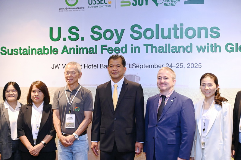 วันพฤหัสบดีที่ 25 กันยายน 2568 เวลา 09.30 น. นายสัตวแพทย์สมชวน รัตนมังคลานนท์ อธิบดีกรมปศุสัตว์ มอบหมายให้ นายสัตวแพทย์รักไทย งามภักดิ์ รองอธิบดีกรมปศุสัตว์ เป็นประธานการประชุมสัมมนา “Advancing Sustainable Animal Feed in Thailand with Global Collaboration and U.S. Soy Solutions” พร้อมทั้งผู้แทนจากกองควบคุมอาหารและยาสัตว์ และกองความร่วมมือด้านการปศุสัตว์ระหว่างประเทศ เข้าร่วมการประชุมฯ ณ ห้องสุขุมวิท ชั้น 3 โรงแรม JW Marriott กรุงเทพมหานคร