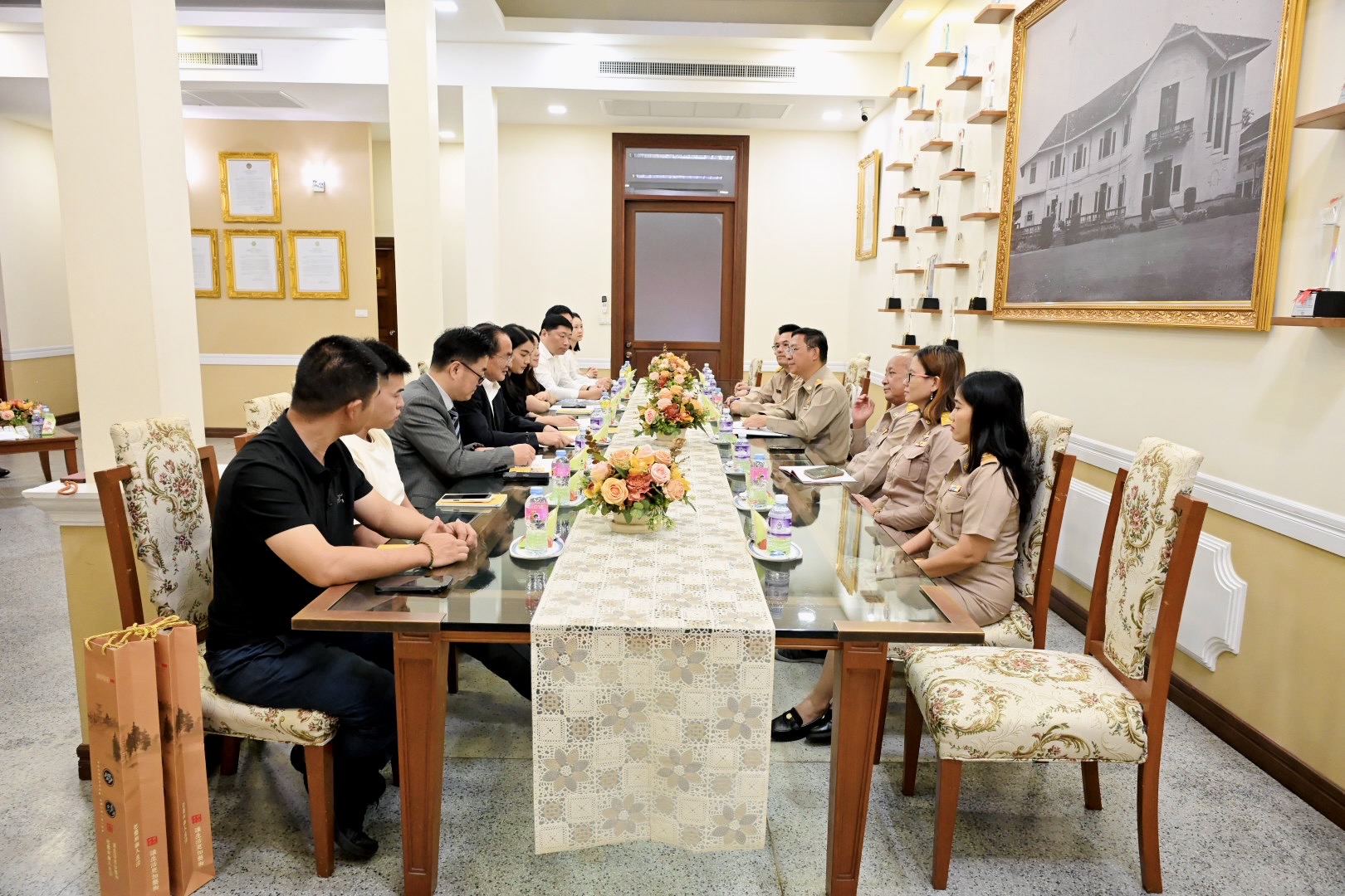 วันจันทร์ที่ 12 มกราคม 2569 เวลา 10.00 น. นายสัตวแพทย์สมชวน รัตนมังคลานนท์ อธิบดีกรมปศุสัตว์ พร้อมผู้บริหารกรมปศุสัตว์ ให้การต้อนรับผู้แทนจากสถานกงศุลใหญ่ ณ นครเฉิงตู สาธารณรัฐประชาชนจีน นำคณะเจ้าหน้าที่จากสมาคมปศุสัตว์ มณฑลเสฉวน สาธารณรัฐประชาชนจีน นำโดยศาตราจารย์ Zhu Qing ประธานสมาคมปศุสัตว์ มณฑลเสฉวน เป็นหัวหน้าคณะฯ เข้าเยี่ยมคารวะ และร่วมหารือในประเด็นการนำเข้าเครื่องในสัตว์ปีก (เครื่องในเป็ดและเครื่องในห่าน) มายังสาธารณรัฐประชาชนจีน โดยมีเจ้าหน้าที่เกี่ยวข้อง เข้าร่วมฯ ณ ห้องรับรอง ชั้น 1 ตึกอำนวยการ กรมปศุสัตว์ กรุงเทพฯ