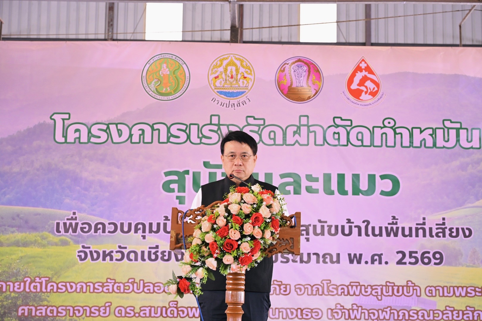 นายนเรศ ธำรงค์ทิพยคุณ รัฐมนตรีช่วยว่าการกระทรวงเกษตรและสหกรณ์ เปิดเผยภายหลังเป็นประธานพิธีเปิด โครงการเร่งรัดผ่าตัดทำหมันสุนัขและแมว เพื่อควบคุมและป้องกันโรคพิษสุนัขบ้าในพื้นที่เสี่ยง จังหวัดเชียงใหม่ ปีงบประมาณ พ.ศ. 2569 ภายใต้โครงการ “สัตว์ปลอดโรค คนปลอดภัยจากโรคพิษสุนัขบ้า” ตามพระปณิธานศาสตราจารย์ ดร.สมเด็จพระเจ้าน้องนางเธอ เจ้าฟ้าจุฬาภรณวลัยลักษณ์ อัครราชกุมารี กรมพระศรีสวางควัฒน วรขัตติยราชนารี ณ ศูนย์จำหน่ายสินค้าชุมชนกองทุนหมู่บ้าน (ตลาดนัดวันพุธ) ต.ช่วงเปา อ.จอมทอง จ.เชียงใหม่ ว่าโครงการนี้มีวัตถุประสงค์เพื่อควบคุมจำนวนประชากรสุนัขและแมวในพื้นที่เสี่ยงต่อการระบาดของโรคพิษสุนัขบ้า ซึ่งเป็นโรคติดต่อร้ายแรงแต่สามารถป้องกันได้ การผ่าตัดทำหมันจึงเป็นมาตรการสำคัญในการลดจำนวนสัตว์จรจัด ลดโอกาสแพร่เชื้อ และสร้างชุมชนปลอดโรคเพื่อความปลอดภัยของประชาชนอย่างยั่งยืน