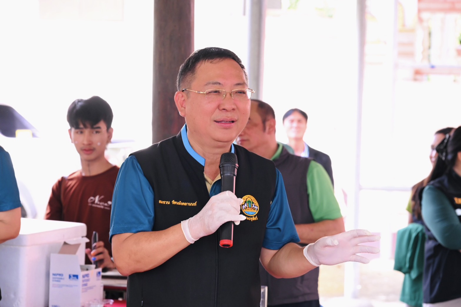 ทั้งนี้ นายอรรถกร ได้เข้าร่วมการอบรมอาสาปศุสัตว์ด้านโรคพิษสุนัขบ้า เพื่อเสริมสร้างความรู้ ความเข้าใจ และทักษะในการฉีดวัคซีนป้องกันโรคพิษสุนัขบ้าอย่างถูกต้อง พร้อมทั้งรับมอบบัตรประจำตัวอาสาสมัครปศุสัตว์ด้านโรคพิษสุนัขบ้า จากนั้นได้ร่วมปฏิบัติจริง โดยทำการฉีดวัคซีนป้องกันโรคพิษสุนัขบ้าให้แก่สัตว์เลี้ยงที่เข้ารับบริการ พร้อมทั้งนำคณะผู้บริหารเยี่ยมชมกิจกรรมการผ่าตัดทำหมันและการฉีดวัคซีนในสัตว์ อีกทั้งยังมอบอาหารสุนัขและแมวให้กับเกษตรกรที่นำสัตว์เลี้ยงมารับบริการอีกด้วย