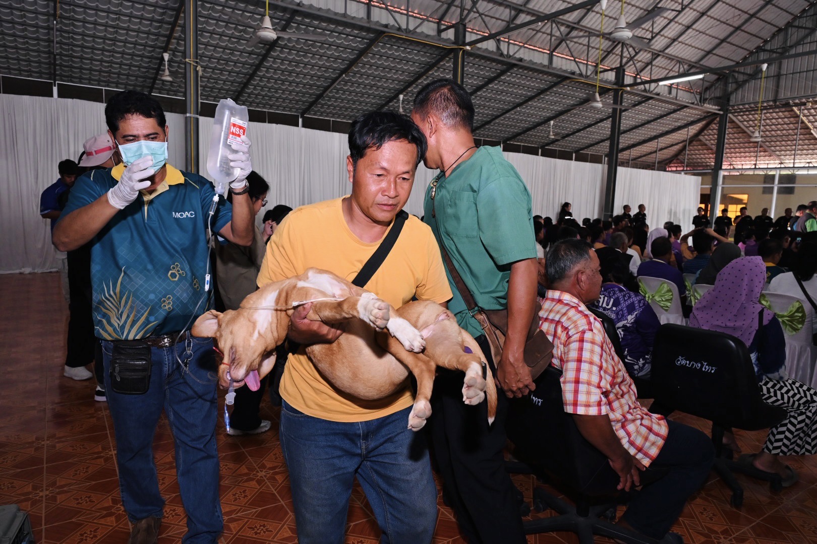 “การทำหมันสุนัขและแมวถือเป็นมาตรการสำคัญในการลดจำนวนประชากรสัตว์ที่ไร้ที่พึ่ง ซึ่งจะช่วยลดโอกาสการแพร่เชื้อระหว่างสัตว์สู่สัตว์ และจากสัตว์สู่คน อีกทั้งยังส่งเสริมสวัสดิภาพสัตว์ และสร้างความปลอดภัยให้กับพี่น้องประชาชน และเพื่อให้ประเทศไทย ปลอดจากโรคพิษสุนัขบ้า ตามพระปณิธานฯ โดยตั้งเป้าหมายขยายผลโครงการดังกล่าวเพิ่มขึ้นอีก 30% ฟรีไม่เสียค่าใช้จ่าย นอกจากนี้ การดำเนินโครงการได้รับความร่วมมืออย่างดียิ่งจากหน่วยงานราชการในพื้นที่ องค์กรปกครองส่วนท้องถิ่น ภาคเอกชน และประชาชนจิตอาสา ผมขอให้ทุกภาคส่วนร่วมมือกันอย่างต่อเนื่อง ทั้งการฉีดวัคซีนป้องกันโรคพิษสุนัขบ้าให้สัตว์เลี้ยง การดูแลสัตว์ที่มีอยู่ในครัวเรือน และการแจ้งเจ้าหน้าที่เมื่อพบสัตว์จรจัด เพื่อช่วยกันสร้างชุมชนปลอดภัยอย่างแท้จริง“ นายอรรถกร กล่าว
