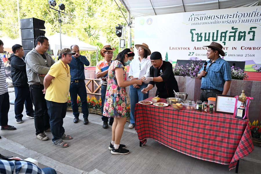 วันพุธที่ 1 มกราคม 2567 นายสัตวแพทย์โสภัชย์ ชวาลกุล รองอธิบดีกรมปศุสัตว์ พร้อมด้วยผู้บริหารกรมปศุสัตว์ที่เกี่ยวข้อง ร่วมปฏิบัติหน้าที่ Chief of the day ในการบริหารจัดการการดำเนินกิจกรรมในภาพรวมของโซนปศุสัตว์ (Livestock Arena) ตรวจสอบและติดตามความพร้อมในการจัดแสดงปศุสัตว์ บูธจำหน่ายสินค้า บูธนิทรรศการ กิจกรรมอื่นๆ รวมทั้งอำนวยความสะดวกและให้บริการประชาชนอย่างทั่วถึงและปลอดภัย ในงานมหกรรมการเกษตรและท่องเที่ยวถนนสายดอกไม้งามริมกว๊านพะเยา จังหวัดพะเยา ณ บริเวณข้างศูนย์จำหน่ายสินค้า ผลิตภัณฑ์ชุมชนเทศบาลเมืองพะเยา ริมกว๊านพะเยา จังหวัดพะเยา เพื่อให้การจัดกิจกรรมต่างๆเป็นไปด้วยความเรียบร้อย โดยกิจกรรมในวันนี้จะมีการจัดแสดงไก่สวยงาม (ไก่แจ้ ไก่ต่อ ไก่ตั้ง สัตว์ปีกสวยงามจากต่างประเทศ) บรรยายอุดมทัศนีย์ไก่แต่ละชนิด เทคนิคการเลี้ยงไก่สวยงาม และสาธิตการทำ "สเต๊กเนื้อโคขุนทาร์ทาร์" เมนูสร้างอาชีพ