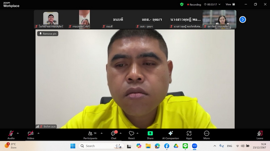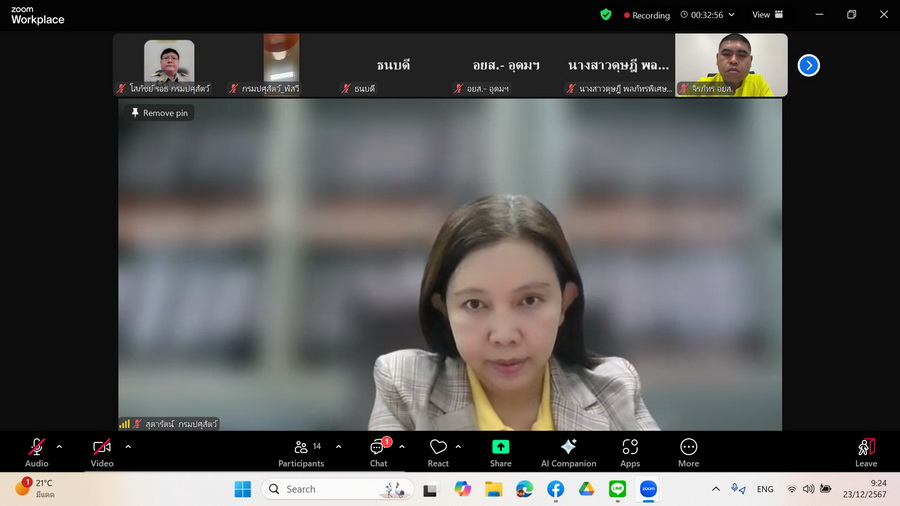 วันที่ 23 ธันวาคม พ.ศ. 2567 เวลา 09.30 น. นายสัตวแพทย์โสภัชย์ ชวาลกุล รองอธิบดีกรมปศุสัตว์ เป็นประธานการประชุมคณะอนุกรรมการเพื่อพิจารณาการขึ้นทะเบียนวัตถุอันตรายด้านการปศุสัตว์ ครั้งที่ 98-16/2567 ผ่านระบบการประชุมทางไกลอิเล็กทรอนิกส์ โดยมี น.สพ. จิรภัทร อินทร์สุข ผอ อยส. พร้อมด้วยผู้ทรงคุณวุฒิ และผู้ที่เกี่ยวข้องเข้าร่วมประชุมฯ เพื่อพิจารณาคำขอขึ้นทะเบียนวัตถุอันตรายด้านการปศุสัตว์