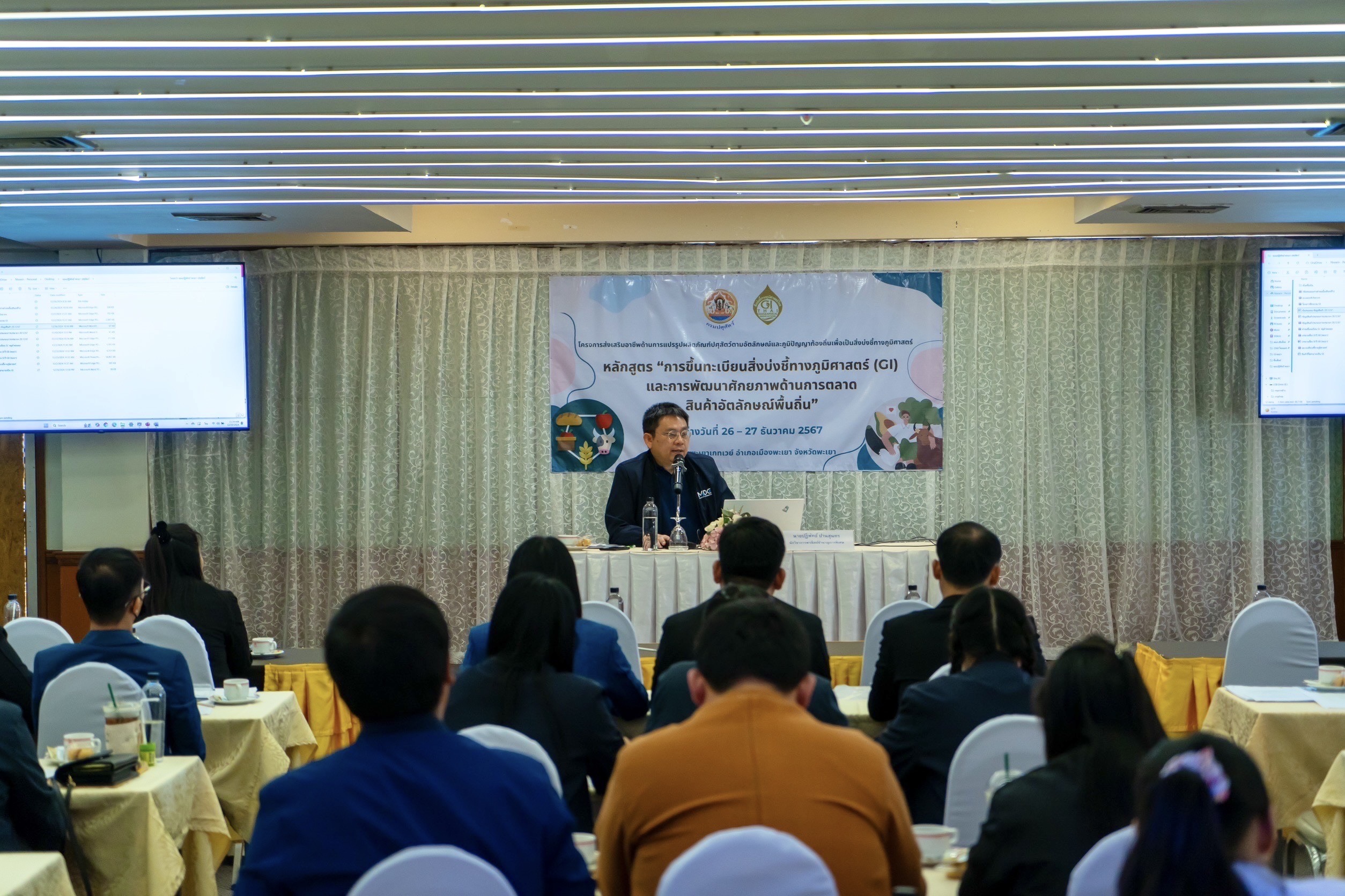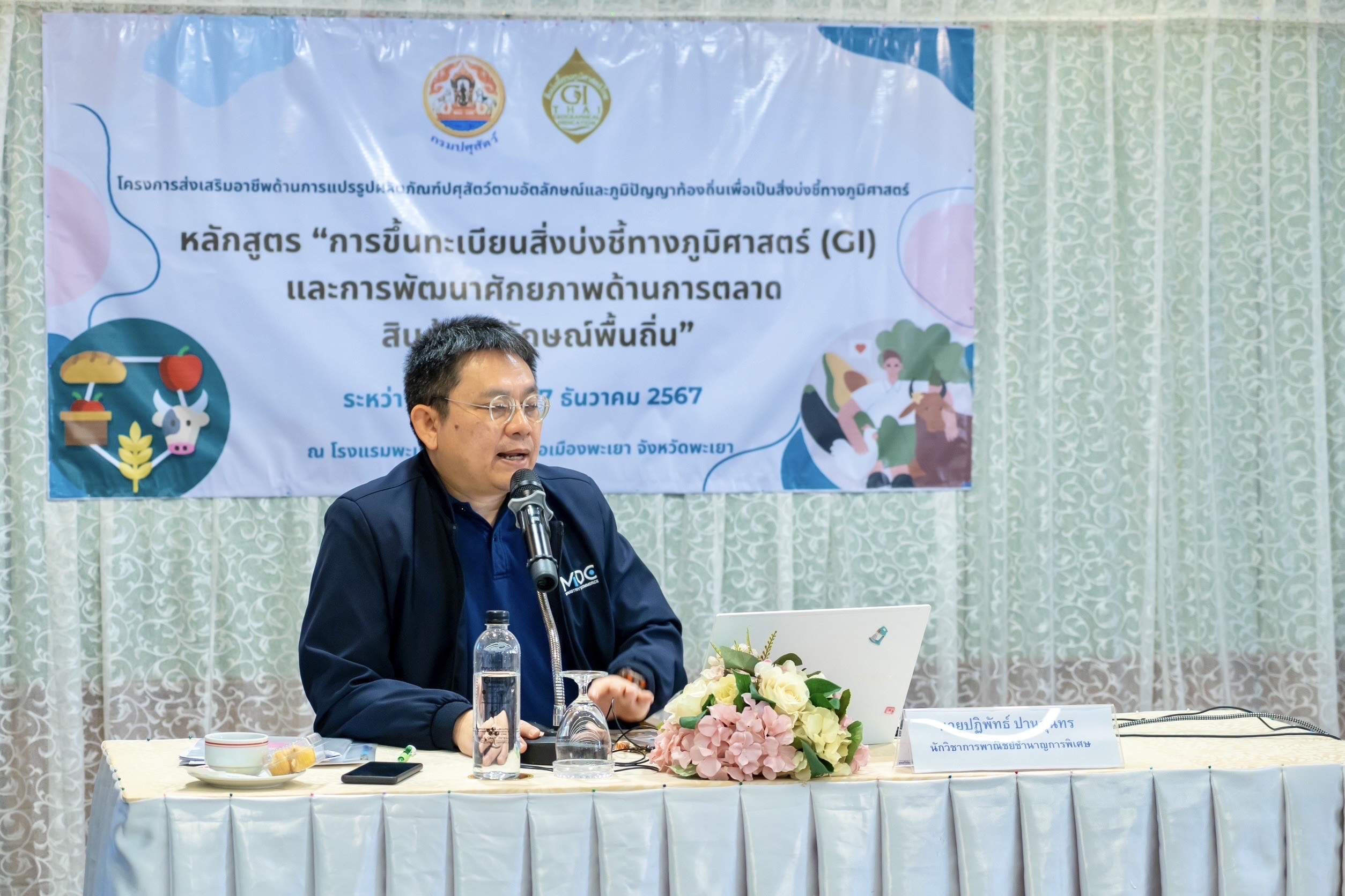 นายสัตวแพทย์โสภัชย์ ชวาลกุล รองอธิบดีกรมปศุสัตว์ เป็นประธานในพิธีเปิดการฝึกอบรม หลักสูตร “การขึ้นทะเบียนสิ่งบ่งชี้ทางภูมิศาสตร์ (GI) และการพัฒนาศักยภาพด้านการตลาดสินค้าอัตลักษณ์พื้นถิ่น” ภายใต้โครงการส่งเสริมอาชีพด้านการแปรรูปผลิตภัณฑ์ปศุสัตว์ตามอัตลักษณ์และภูมิปัญญาท้องถิ่นเพื่อเป็นสิ่งบ่งชี้ทางภูมิศาสตร์ ให้กับเจ้าหน้าที่กรมปศุสัตว์และเครือข่ายเกษตรกร รวม 80 ราย ซึ่งมีกำหนดจัดในระหว่างวันที่ 26-27 ธันวาคม 2567 ณ โรงแรมพะเยาเกทเวย์ อำเภอเมืองพะเยา จังหวัดพะเยา โดยมีรายละเอียดในการอบรมวันแรก ดังนี้