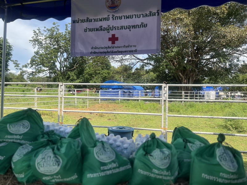 ทั้งนี้ รองอธิบดีกรมปศุสัตว์ได้มอบเสบียงอาหารสัตว์ช่วยเหลือเกษตรกรผู้เลี้ยงสัตว์ในพื้นที่อำเภอวารินชำราบ จังหวัดอุบลราชธานี เพื่อบรรเทาความเดือดร้อนและลดผลกระทบต่อสัตว์เลี้ยงจากสถานการณ์อุทกภัย