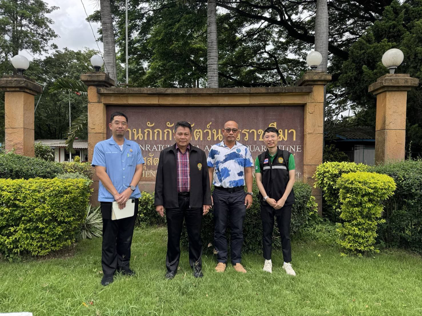 วันพุธที่ 1 ตุลาคม 2568 เวลา 11.00 น. นายสัตวแพทย์บุญญกฤช ปิ่นประสงค์ รองอธิบดีกรมปศุสัตว์ ลงพื้นที่ตรวจเยี่ยมด่านกักกันสัตว์นครราชสีมาและศูนย์วิจัยเทคโนโลยีชีวภาพการย้ายฝากตัวอ่อนและเซลล์สืบพันธุ์สัตว์ ตำบลปากช่อง อำเภอปากช่อง จังหวัดนครราชสีมา โดยมีนายจักรกริศน์ ไกรสนธิ์ หัวหน้าด่านกักกันสัตว์นครราชสีมา นายอนนท์ เทืองสันเทียะ ผู้อำนวยการศูนย์วิจัยเทคโนโลยีชีวภาพการย้ายฝากตัวอ่อนและเซลล์สืบพันธุ์สัตว์ และนายรุชติโรจน์ จิโรจน์วงศ์ นายสัตวแพทย์ชำนาญการพิเศษ สำนักเทคโนโลยีชีวภัณฑ์สัตว์ ให้การต้อนรับ ทั้งนี้ ได้บรรยายผลการดำเนินงาน ปัญหาอุปสรรคในการปฏิบัติงานของด่านกักกันสัตว์นครราชสีมา และเสนอแนวทางแก้ไขปัญหาเพื่อให้การทำงานเป็นไปอย่างมีประสิทธิภาพ