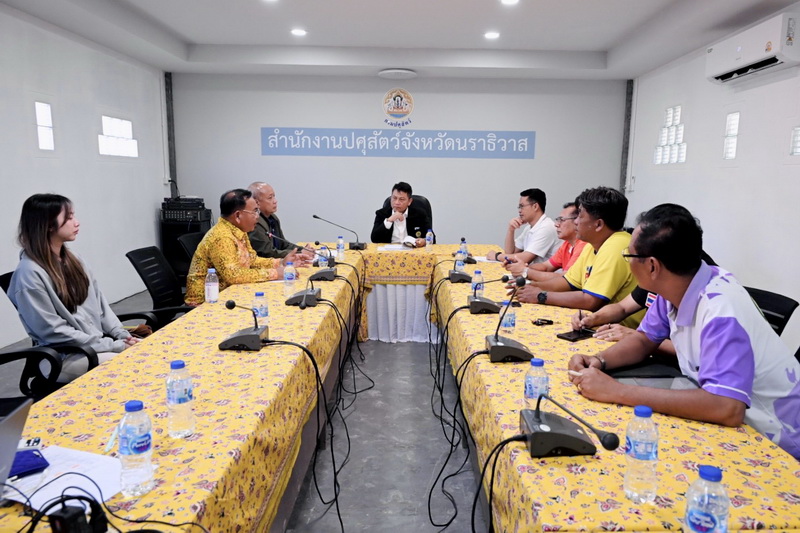 วันศุกร์ที่ 2 ตุลาคม 2568 เวลา 16.00 น. นายสัตวแพทย์สมชวน รัตนมังคลานนท์ อธิบดีกรมปศุสัตว์ มอบหมายให้ นายสัตวแพทย์บุญญกฤช ปิ่นประสงค์ รองอธิบดีกรมปศุสัตว์ เป็นประธานการประชุมเตรียมความพร้อมการจัดงานกิจกรรมโครงการเร่งรัดผ่าตัดทำหมันสุนัข - แมว เพื่อควบคุมป้องกันโรคพิษสุนัขบ้า ประจำปีงบประมาณ พ.ศ. 2569 ภายใต้โครงการสัตว์ปลอดโรค คนปลอดภัยจากโรคพิษสุนัขบ้า ตามพระปณิธาน ศาสตราจารย์ ดร.สมเด็จเจ้าฟ้าฯ กรมพระศรีสวางควัฒน วรขัตติยราชนารี และ พิธีปล่อยขบวนคาราวานหญ้าอาหารสัตว์ เพื่อเตรียมความพร้อมรับมือจากภัยพิบัติในพื้นที่ จ.นราธิวาส โดยมีนายณรงค์ เลี้ยงเจริญ ผู้อำนวยการสำนักควบคุม ป้องกันและบำบัดโรคสัตว์ นายจักรพงษ์ ขานโบ ปศุสัตว์จังหวัดนราธิวาส และเจ้าหน้าที่ที่เกี่ยวข้องผู้เข้าร่วมประชุมฯ ณ สำนักงานปศุสัตว์จังหวัดนราธิวาส พร้อมกันนี้ได้ลงพื้นที่ในการวางแผนการจัดงานฯ ดังกล่าว ณ ศาลากลางจังหวัดนราธิวาส และโรงเรียนนราสิกขาลัย อำเภอเมือง จังหวัดนราธิวาส ภาพ : คุณฉัตรชัย นวลปลอด ข่าว : คุณวราภรณ์ เสาหงษ์ กลุ่มเผยแพร่ฯ/ สลก. / กรมปศุสัตว์