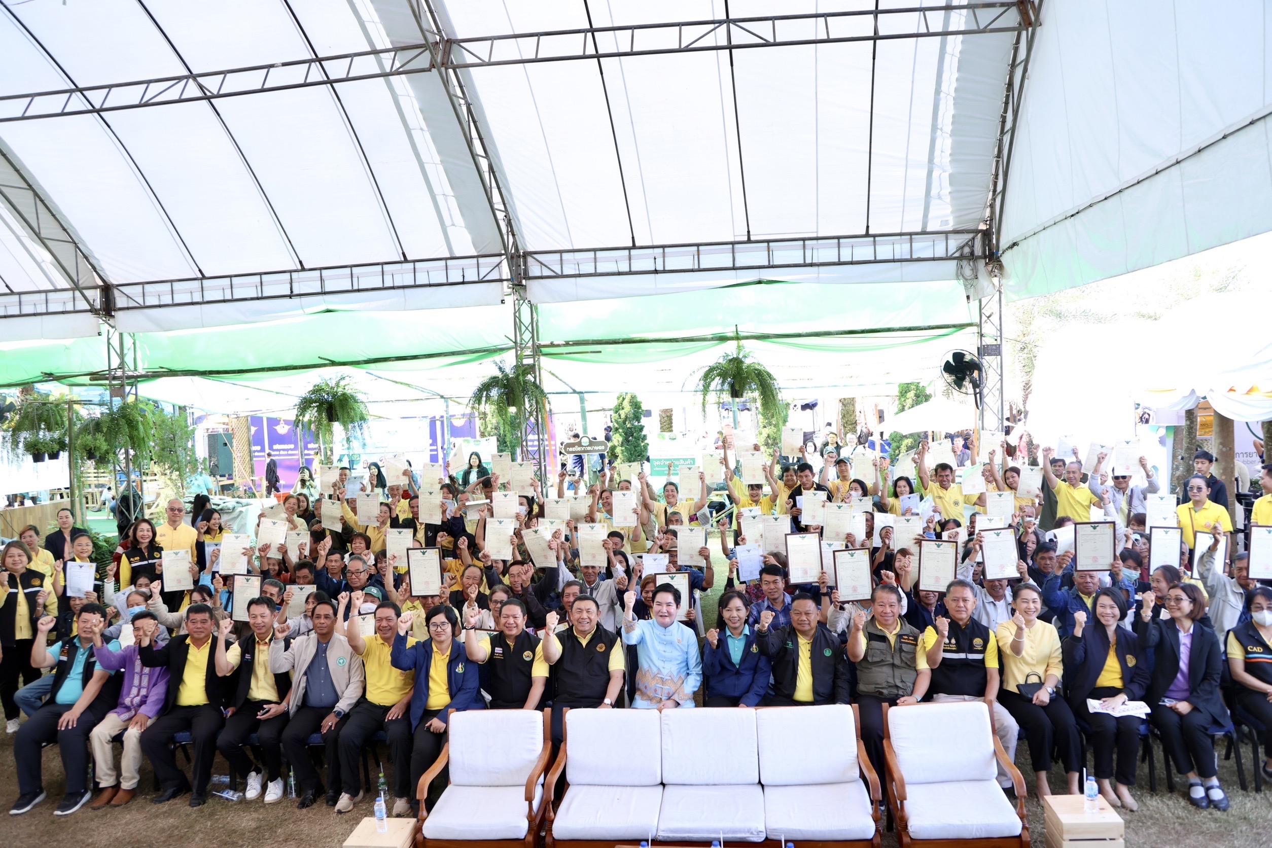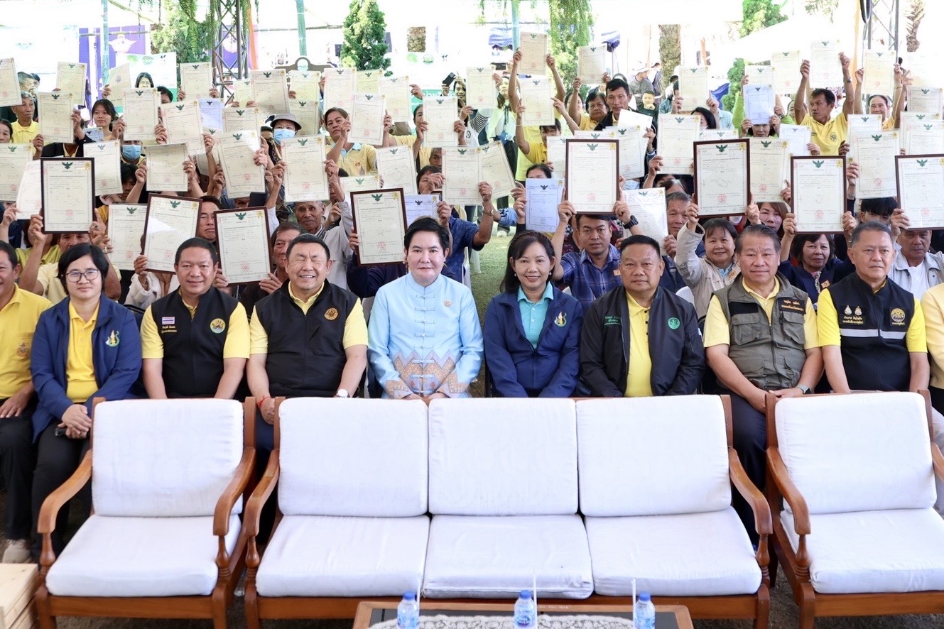 วันเสาร์ที่ 4 มกราคม 2568 นายสัตวแพทย์สมชวน รัตนมังคลานนท์ อธิบดีกรมปศุสัตว์ มอบหมายให้นายสัตวแพทย์ประภาส ภิญโญชีพ รองอธิบดีกรมปศุสัตว์ พร้อมด้วยนายสัตวแพทย์กฤษณิ์ พิมพ์งาม ปศุสัตว์จังหวัดพะเยา และเจ้าหน้าที่ที่เกี่ยวข้อง เข้าร่วมพิธีมอบโฉนดที่ดินเพื่อการเกษตร ณ งานมหกรรมการเกษตรและท่องเที่ยวถนนสายดอกไม้งาม ริมกว๊านพะเยา จังหวัดพะเยา โดยมีนายอัครา พรหมเผ่า รัฐมนตรีช่วยว่าการกระทรวงเกษตรและสหกรณ์ เป็นประธานในพิธีฯ นายเศรษฐเกียรติ กระจ่างวงษ์ เลขาธิการสำนักงานการปฏิรูปที่ดินเพื่อเกษตรกรรม ได้กล่าวรายงานความเป็นมาของการมอบโฉนดฯ ในการนี้รัฐมนตรีช่วยว่าการกระทรวงเกษตรและสหกรณ์พร้อมด้วยผู้บริหารกระทรวงเกษตรและสหกรณ์ ได้มอบโฉนดที่ดินเพื่อการเกษตรให้แก่เกษตรกร จำนวน 100 ราย ซึ่งจะทำให้เกษตรกรสามารถใช้สิทธิ์บนเอกสารสิทธิ์ได้อย่างเต็มรูปแบบ บนกรรมสิทธิ์ที่ สปก.มอบให้