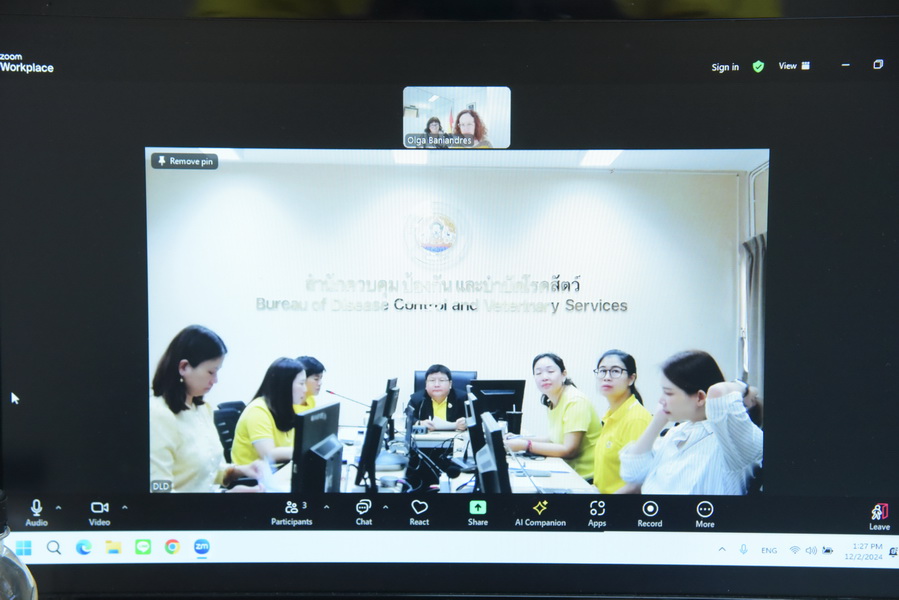 วันจันทร์ที่ 2 ธันวาคม 2567 เวลา 13.30 น. นายสัตวแพทย์โสภัชย์ ชวาลกุล รองอธิบดีกรมปศุสัตว์ เป็นประธานการประชุมหารือความร่วมมือด้านการปศุสัตว์ระหว่างไทยและสเปน พร้อมด้วยผู้แทนจาก กรป. กสก. อยส. ศทส. และเจ้าหน้าที่ที่เกี่ยวข้อง ร่วมหารือกับ Ms. Olga Baniandres Rodriguez, Counsellor of Agriculture, Fisheries and Food ณ ห้องประชุม 411 ชั้น 4 ตึกวิจิตรพาหนการ กรมปศุสัตว์ พญาไท (ฝ่ายไทย) และผ่านรูปแบบออนไลน์ Zoom meeting (ฝ่ายสเปน)