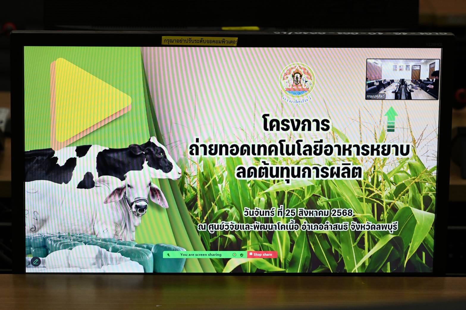 วันพุธที่ 20 สิงหาคม 2568 เวลา 13.30 น. นายสัตวแพทย์โสภัชย์ ชวาลกุล รองอธิบดีกรมปศุสัตว์ เป็นประธานการประชุมการจัดเตรียมงานโครงการถ่ายทอดเทคโนโลยีอาหารหยาบลดต้นทุนการผลิต พร้อมด้วยนายดนัย คำขวัญ ผู้อำนวยการสำนักพัฒนาพันธุ์สัตว์ สัตวแพทย์หญิงขนิษฐา ธิติดิลกรัตน์ ปศุสัตว์เขต 1 นางสาววิลย์ลิกา เพ็ญศรีสวรรค์ นักวิชาการเผยแพร่ชำนาญการพิเศษ ผู้แทนสำนักพัฒนาอาหารสัตว์ สำนักเทคโนโลยีชีวภาพการผลิตปศุสัตว์ สำนักงานปศุสัตว์เขต 3 และเจ้าหน้าที่ที่เกี่ยวข้องเข้าร่วมประชุมฯ เพื่อจัดเตรียมงานโครงการถ่ายทอดเทคโนโลยีอาหารหยาบลดต้นทุนการผลิต เพื่อที่เกษตรกรสามารถนำองค์ความรู้ที่ได้รับการถ่ายทอดจากกรมปศุสัตว์ไปปฏิบัติใช้ภายในฟาร์มของเกษตรกรในการผลิตอาหารหยาบลดต้นทุน โดยโครงการจะจัดในวันจันทร์ที่ 25 สิงหาคม 2568 ณ ศูนย์วิจัยและพัฒนาโคเนื้อ อำเภอลำสนธิ จังหวัดลพบุรี