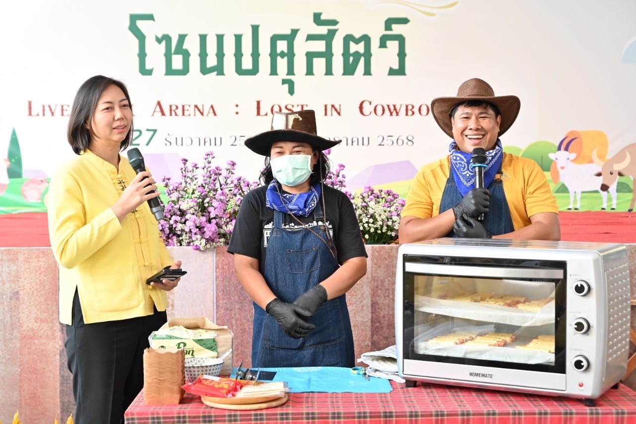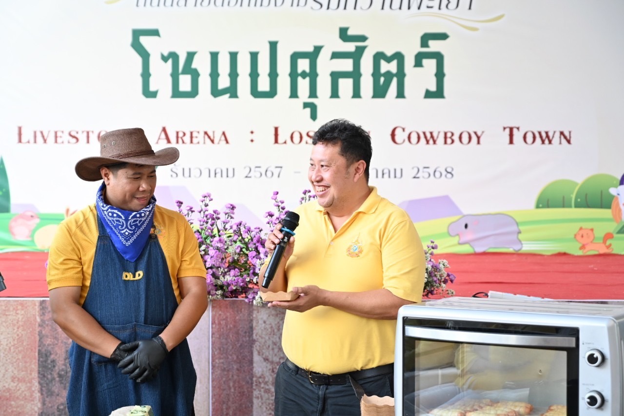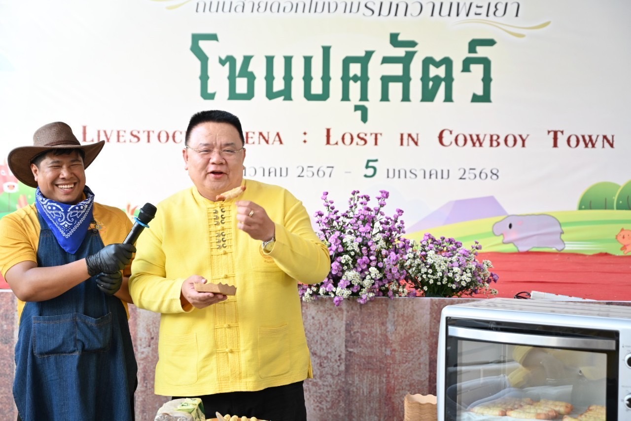 วันจันทร์ที่ 30 ธันวาคม 2567 นายสัตวแพทย์บุญญกฤช ปิ่นประสงค์ รองอธิบดีกรมปศุสัตว์ ปฏิบัติหน้าที่ Chief of the day ในการบริหารจัดการการดำเนินกิจกรรมในภาพรวมของโซนปศุสัตว์ (Livestock Arena) ตรวจสอบและติดตามความพร้อมในการจัดแสดงปศุสัตว์ บูธจำหน่ายสินค้า บูธนิทรรศการ กิจกรรมอื่นๆ รวมทั้งอำนวยความสะดวกและให้บริการประชาชนอย่างทั่วถึงและปลอดภัย ในงานมหกรรมการเกษตรและท่องเที่ยวถนนสายดอกไม้งามริมกว๊านพะเยา จังหวัดพะเยา ณ บริเวณข้างศูนย์จำหน่ายสินค้า ผลิตภัณฑ์ชุมชนเทศบาลเมืองพะเยา ริมกว๊านพะเยา จังหวัดพะเยา เพื่อให้การจัดกิจกรรมในวันนี้เป็นไปด้วยความเรียบร้อย นอกจากนี้ ยังได้ร่วมกิจกรรมสาธิตเมนูสร้างอาชีพ "ไส้กรอกทวิตเตอร์" ทั่สาธิตโดยศูนย์วิจัยและพัฒนาผลิตภัณฑ์ปศุสัตว์เชียงใหม่ อีกด้วย