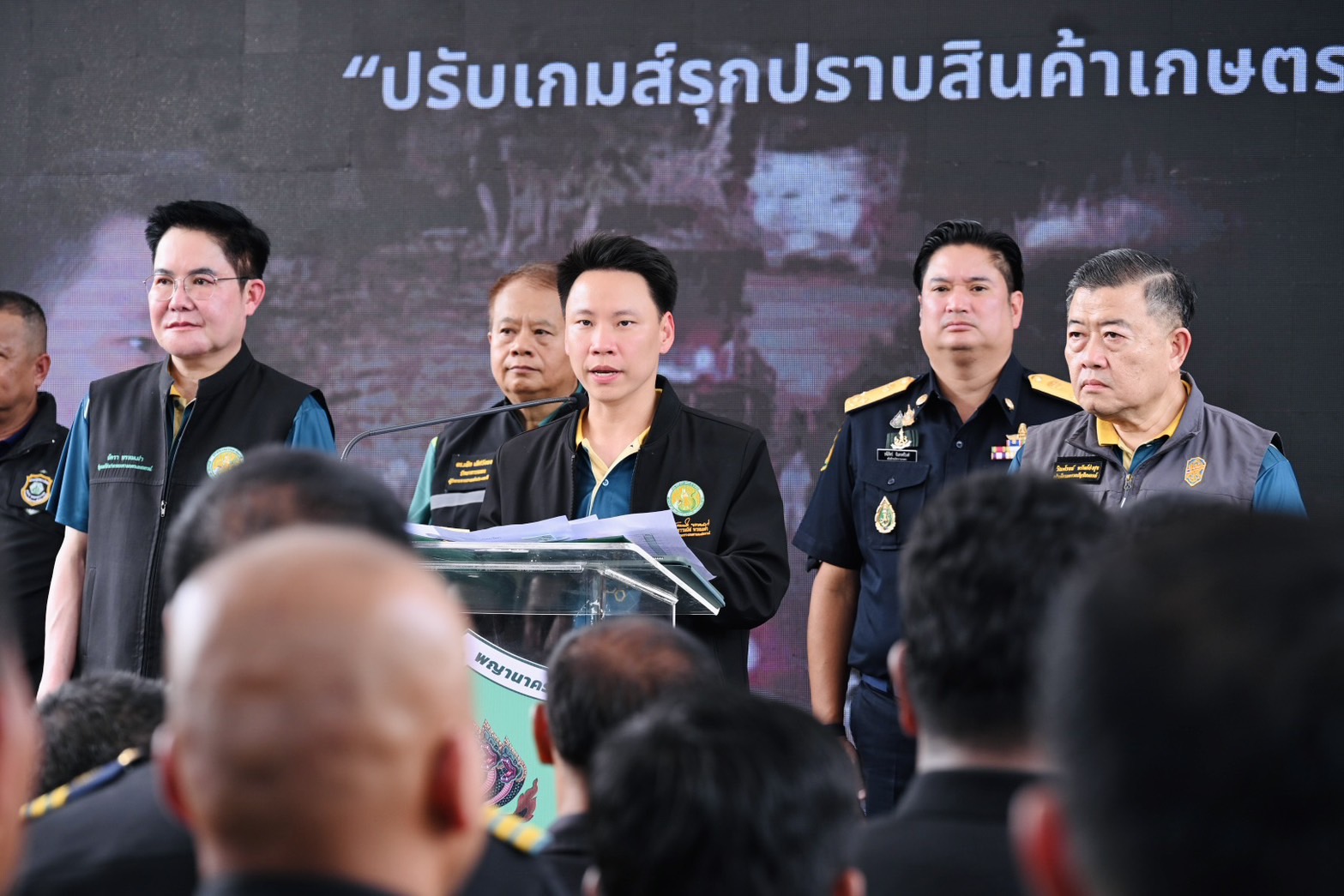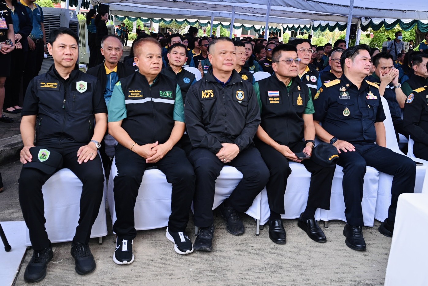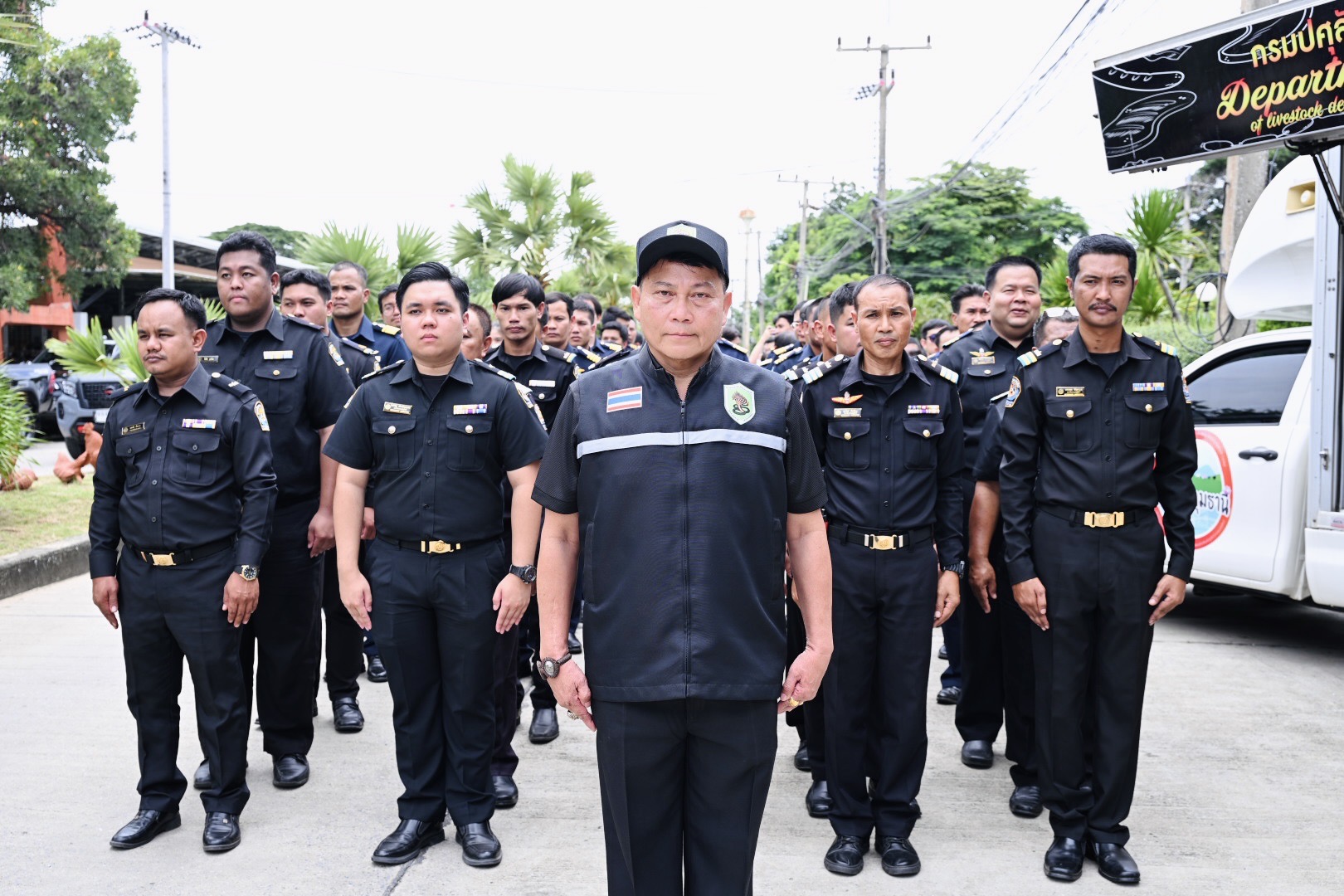 วันอังคารที่ 19 สิงหาคม 2568 เวลา 14.30 น. นายสัตวแพทย์สมชวน รัตนมังคลานนท์ อธิบดีกรมปศุสัตว์ พร้อมด้วยนายสัตวแพทย์บุญญกฤช ปิ่นประสงค์ นายสัตวแพทย์รักไทย งามภักดิ์ รองอธิบดีกรมปศุสัตว์ และคณะผู้บริหารกรมปศุสัตว์ เข้าร่วมงาน “ฉก.พญานาคราช ปรับเกมส์รุก ปราบสินค้าเกษตรเถื่อน” โดยได้รับเกียรติจากนายอรรถกร ศิริลัทธยากร รัฐมนตรีว่าการกระทรวงเกษตรและสหกรณ์ เป็นประธานเปิดงานฯ โดยมีนายอัครา พรหมเผ่า รัฐมนตรีช่วยว่าการกระทรวงเกษตรและสหกรณ์ ผู้บริหารในสังกัดกระทรวงเกษตรและสหกรณ์ และเจ้าหน้าที่ที่เกี่ยวข้อง เข้าร่วมงานฯ ณ ศูนย์ราชการกรมปศุสัตว์ปทุมธานี อำเภอเมืองปทุมธานี จังหวัดปทุมธานี