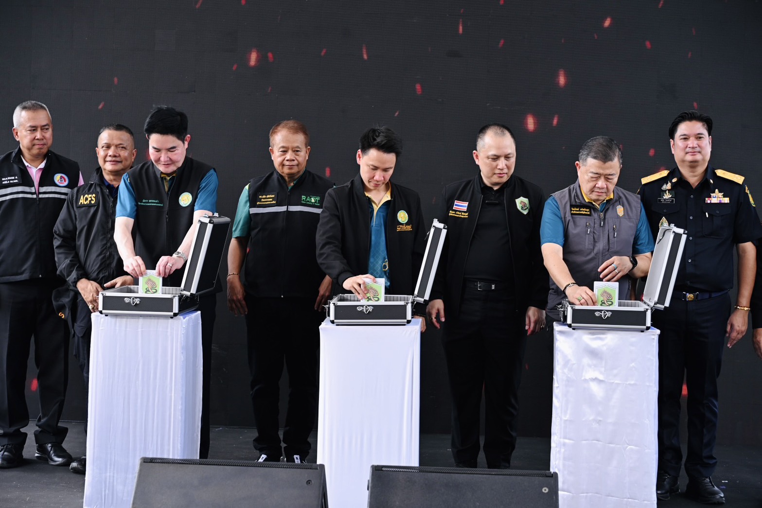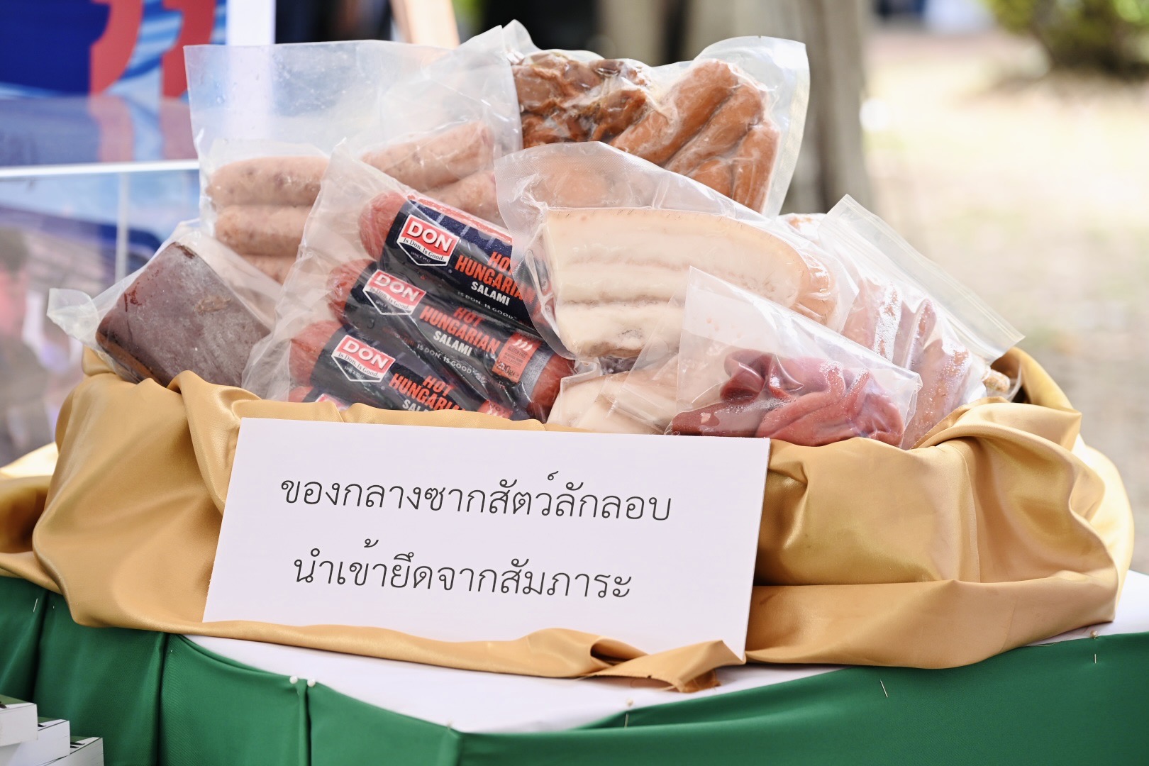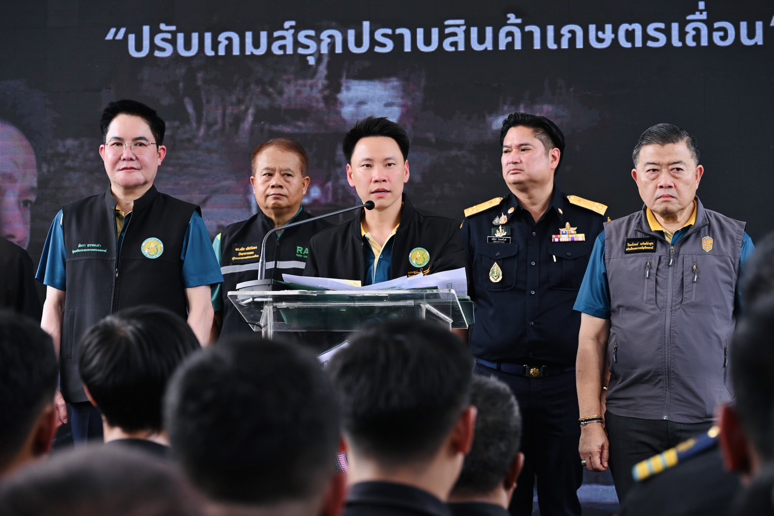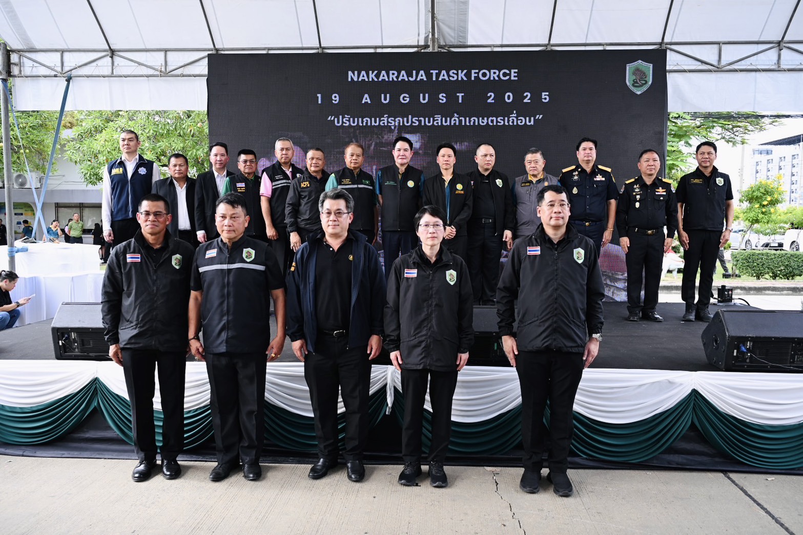 วันอังคารที่ 19 สิงหาคม 2568 เวลา 14.30 น. นายสัตวแพทย์สมชวน รัตนมังคลานนท์ อธิบดีกรมปศุสัตว์ พร้อมด้วยนายสัตวแพทย์บุญญกฤช ปิ่นประสงค์ นายสัตวแพทย์รักไทย งามภักดิ์ รองอธิบดีกรมปศุสัตว์ และคณะผู้บริหารกรมปศุสัตว์ เข้าร่วมงาน “ฉก.พญานาคราช ปรับเกมส์รุก ปราบสินค้าเกษตรเถื่อน” โดยได้รับเกียรติจากนายอรรถกร ศิริลัทธยากร รัฐมนตรีว่าการกระทรวงเกษตรและสหกรณ์ เป็นประธานเปิดงานฯ โดยมีนายอัครา พรหมเผ่า รัฐมนตรีช่วยว่าการกระทรวงเกษตรและสหกรณ์ ผู้บริหารในสังกัดกระทรวงเกษตรและสหกรณ์ และเจ้าหน้าที่ที่เกี่ยวข้อง เข้าร่วมงานฯ ณ ศูนย์ราชการกรมปศุสัตว์ปทุมธานี อำเภอเมืองปทุมธานี จังหวัดปทุมธานี