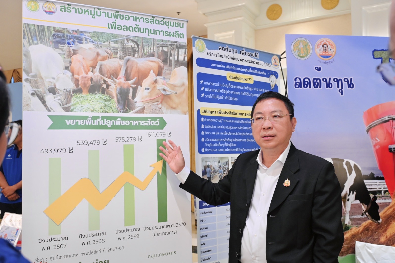 ในการนี้ กรมปศุสัตว์ โดยสำนักพัฒนาอาหารสัตว์ ได้ร่วมจัดนิทรรศการให้ความรู้เกี่ยวกับอาหารสัตว์ TMR เป็นการให้ข้อมูลและองค์ความรู้เกี่ยวกับอาหารผสมครบส่วน สำหรับโคเนื้อ โคนม แพะและแกะ ซึ่งมีการผสมอาหารหยาบและอาหารข้นในสัดส่วนที่เหมาะสม เพื่อให้สัตว์ได้รับสารอาหารครบถ้วน โดยเน้นย้ำถึงความสำคัญของคุณภาพวัตถุดิบ การคำนวณสัดส่วนที่ถูกต้อง และวิธีการให้อาหารที่เหมาะสม และการลดต้นทุน เพิ่มรายได้ นอกจากนี้ได้จัดแสดงนิทรรศการเกี่ยวกับขั้นตอนการขอรับใบอนุญาตผลิตอาหารสัตว์ควบคุมเฉพาะอีกด้วย