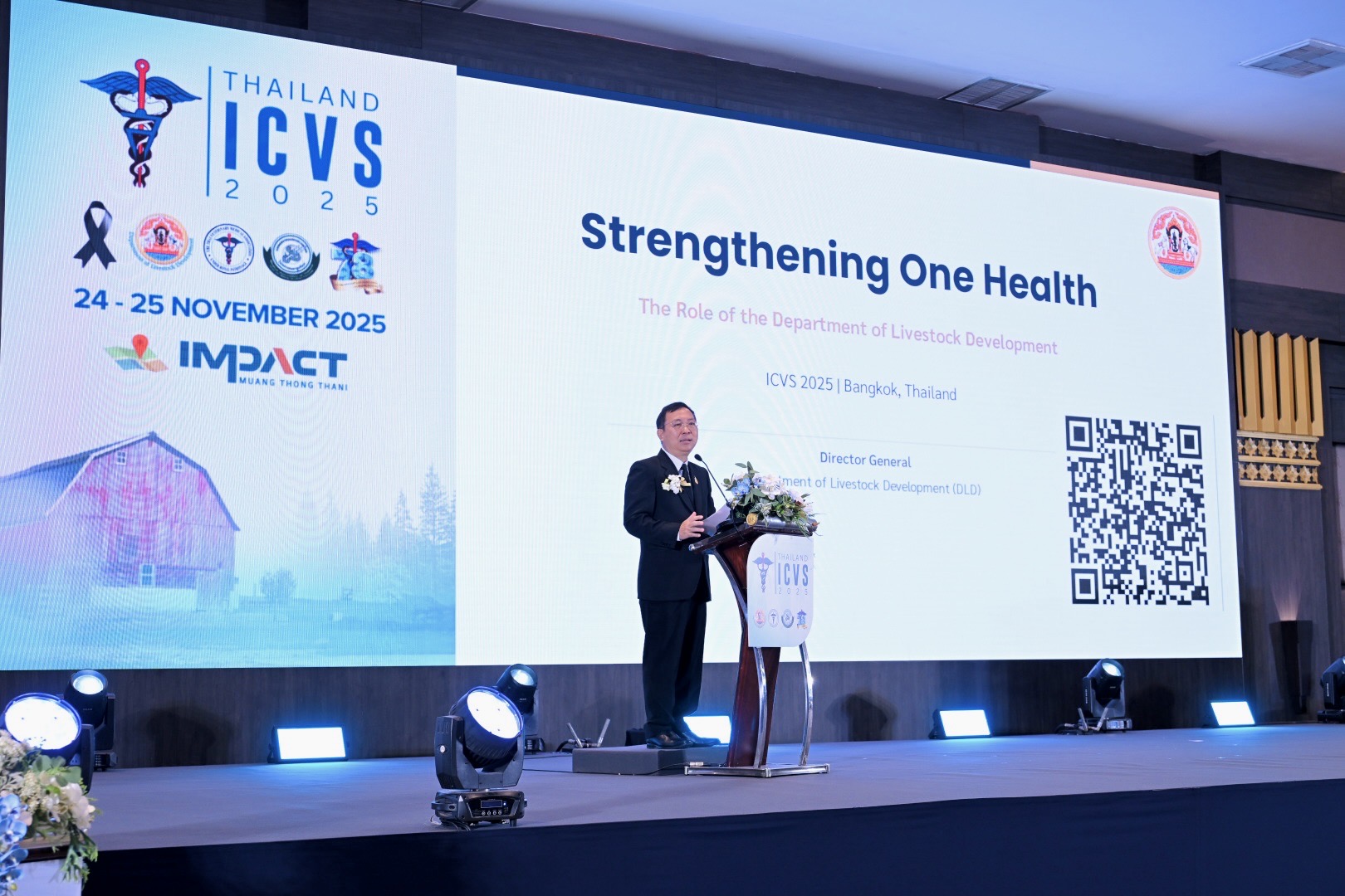 นายสัตวแพทย์สมชวน รัตนมังคลานนท์ อธิบดีกรมปศุสัตว์ เปิดเผยว่า การประชุมครั้งนี้เป็นความร่วมมือของทุกภาคส่วนด้านสุขภาพทั้งในและต่างประเทศ เพื่อบูรณาการองค์ความรู้ด้านคน สัตว์ และสิ่งแวดล้อม ตามแนวคิดสุขภาพหนึ่งเดียว โดยกรมปศุสัตว์ให้ความสำคัญกับการยกระดับสุขภาพสัตว์และความปลอดภัยทางอาหาร ซึ่งเป็นรากฐานของความมั่นคงอาหารของประเทศ พร้อมสนับสนุนการพัฒนาองค์ความรู้และเทคโนโลยีร่วมกับทุกฝ่าย เพื่อให้ประเทศไทยก้าวทันการเปลี่ยนแปลงของโลกและตอบโจทย์ตลาดสากล
