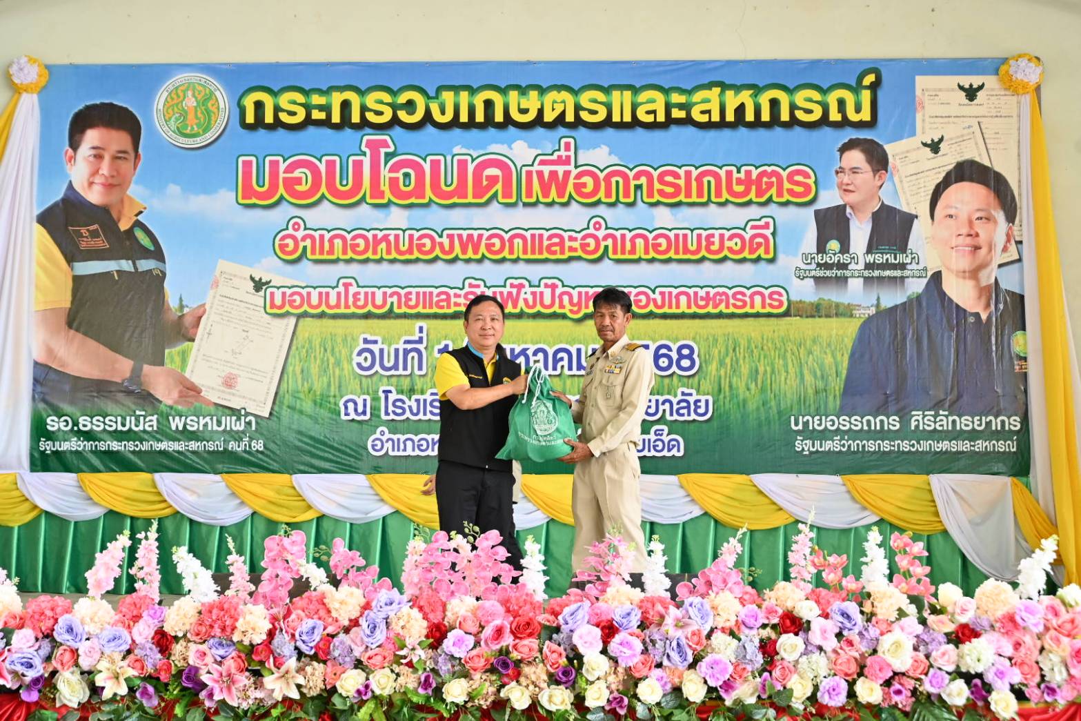 วันศุกร์ที่ 1 สิงหาคม 2568 นายสัตวแพทย์สมชวน รัตนมังคลานนท์ อธิบดีกรมปศุสัตว์ พร้อมคณะผู้บริหารกรมปศุสัตว์ ร่วมติดตามคณะ นายอรรถกร ศิริลัทธยากร รัฐมนตรีว่าการกระทรวงเกษตรและสหกรณ์ ลงพื้นที่ตรวจราชการ พร้อมพบปะกลุ่มเกษตรกรในพื้นที่จังหวัดร้อยเอ็ด โดยมีผู้บริหารในสังกัดกระทรวงเกษตรและสหกรณ์ ปศุสัตว์จังหวัดและเจ้าหน้าที่ปศุสัตว์ในพื้นที่เขต 3 และ 4 และเจ้าหน้าที่ที่เกี่ยวข้อง เข้าร่วมงานฯ ทั้งนี้คณะ รมว.เกษตรฯ มีกำหนดการลงพื้นที่ทั้งหมด 3 จุด คือ จุดที่ 1 ลงพื้นที่วิทยาลัยการอาชีพโพนทอง ตำบลแวง อำเภอโพนทอง จังหวัดร้อยเอ็ด จุดที่ 2 ลงพื้นที่ ณ โรงเรียนหนองพอกวิทยาลัย ตำบลรอบเมือง อำเภอหนองพอก จังหวัดร้อยเอ็ด และจุดที่ 3 หอประชุมที่ว่าการอำเภอโพธิ์ชัย ตำบลขามเบี้ย อำเภอโพธิ์ชัย จังหวัดร้อยเอ็ด