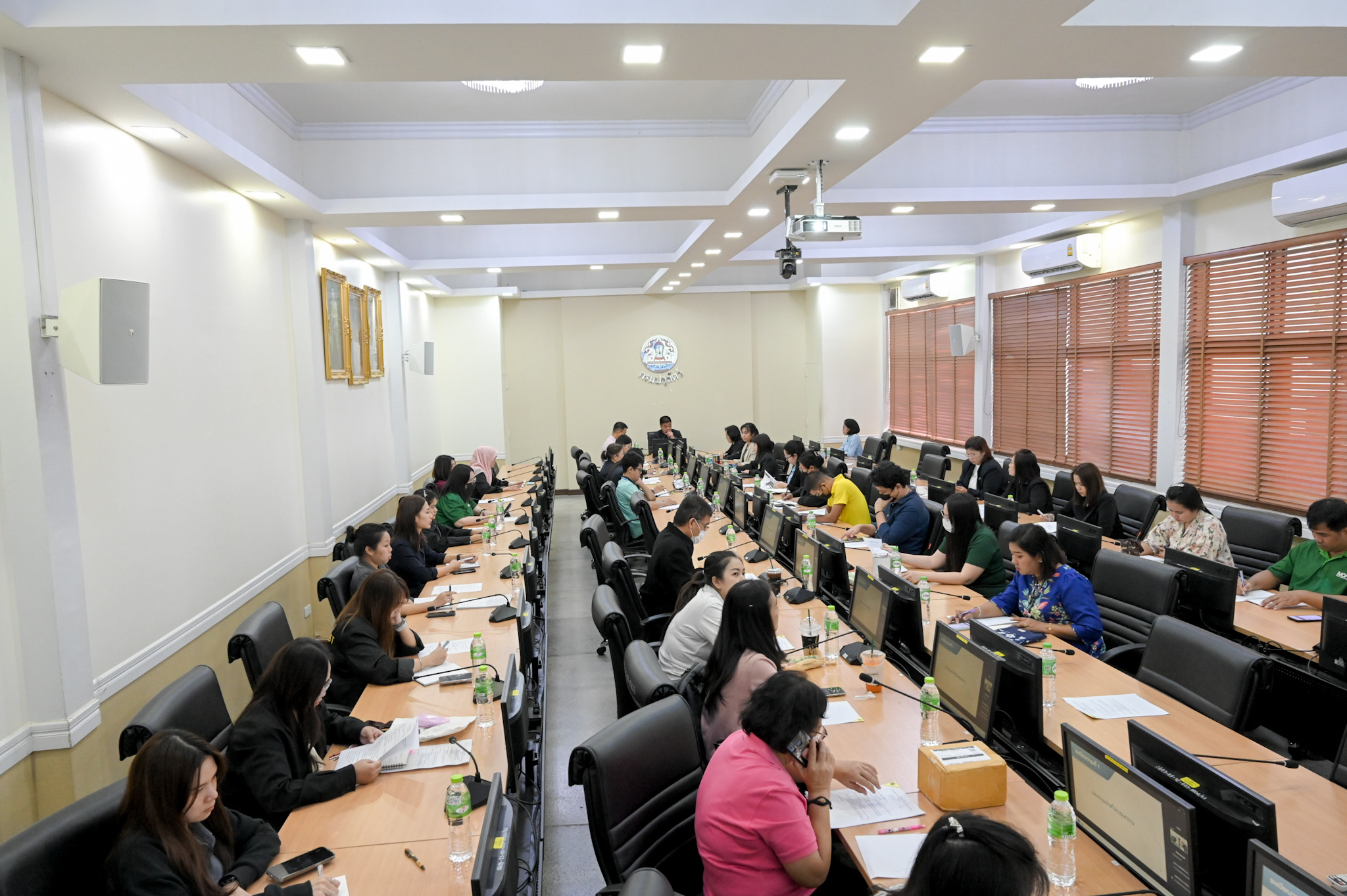 วันที่ 7 ตุลาคม 2568 เวลา 10.00 น. นายพงษ์พันธ์ ธรรมมา รองอธิบดีกรมปศุสัตว์ เป็นประธานการประชุมคณะทำงานขับเคลื่อนการใช้งานระบบบริหารจัดการสำนักงาน (e-Office) ของกรมปศุสัตว์ ครั้งที่ 3/2568 โดยมีนายกิติกรณ์ เจนไพบูลย์ ผู้อำนวยการศูนย์เทคโนโลยีสารสนเทศและการสื่อสาร และเจ้าหน้าที่ที่เกี่ยวข้อง เข้าร่วมการประชุมฯ เพื่อสรุปปัญหาที่พบจากการทดสอบระบบ และเสนอแนวทางแก้ไขปัญหา รวมถึงการกำหนดประเภทหนังสือที่เริ่มใช้ในระบบบริหารจัดการสำนักงาน (e-Office) การกำหนดแนวปฏิบัติการรับ-ส่งหนังสือในระบบบริหารจัดการสำนักงาน และกระบวนการรับ ส่งหนังสือในระบบฯ (WorkFlow) และกำหนดระยะเวลาการเริ่มใช้งานระบบบริหารจัดการสำนักงาน (e Office) ของกรมปศุสัตว์ ซึ่งคณะทำงานฯ เห็นชอบร่วมกันในการเริ่มใช้งานระบบสำหรับหน่วยงานในสังกัดส่วนกลาง วันที่ 1 มกราคม 2569 โดย สำนักงานเลขานุการกรมจะจัดทำแนวปฏิบัติการรับ-ส่งหนังสือในระบบบริหารจัดการสำนักงาน และกระบวนการรับ ส่งหนังสือในระบบฯ (WorkFlow) และแจ้งหน่วยงานในสังกัดทราบต่อไป