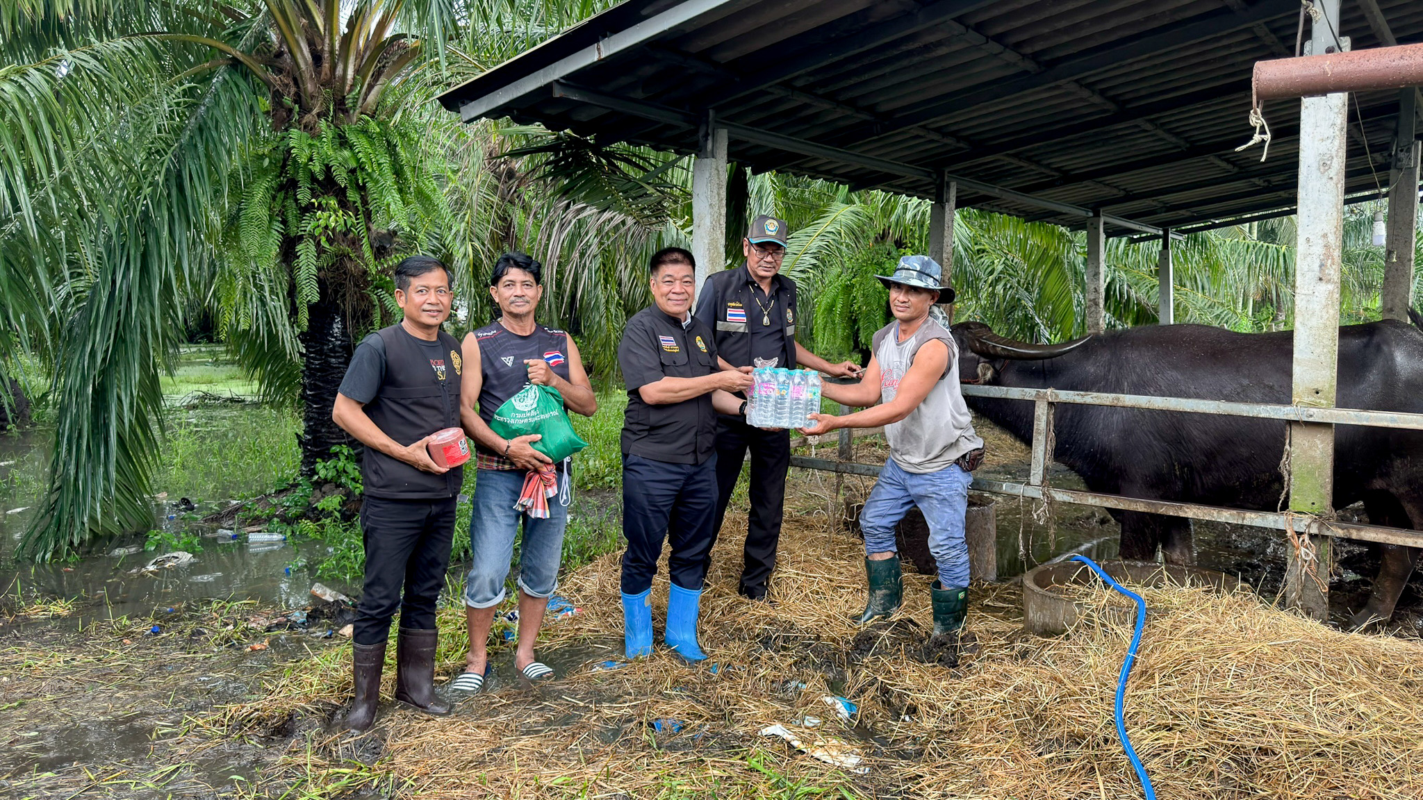 วันที่ 24 พฤศจิกายน 2568 นายสัตวแพทย์สมชวน รัตนมังคลานนท์ อธิบดีกรมปศุสัตว์ มอบหมายให้ นายพงษ์พันธ์ ธรรมมา รองอธิบดีกรมปศุสัตว์ พร้อมด้วยนายพินิจ สวัสดิรักษา ปศุสัตว์จังหวัดสงขลา และเจ้าหน้าที่ที่เกี่ยวข้อง ลงพื้นที่เยี่ยมและให้ความช่วยเหลือเกษตรกรที่ประสบอุทกภัยน้ำท่วม ทั้งนี้ได้สร้างขวัญกำลังใจ พร้อมทั้งรับฟังปัญหาที่เกิดขึ้นกับกับเกษตรกรในพื้นที่ที่ได้รับความเดือดร้อน ณ ที่ทำการผู้ใหญ่บ้านหมู่ที่ 4 ตำบลบ้านขาว อำเภอระโนด