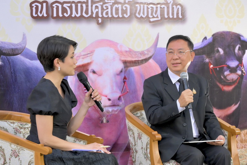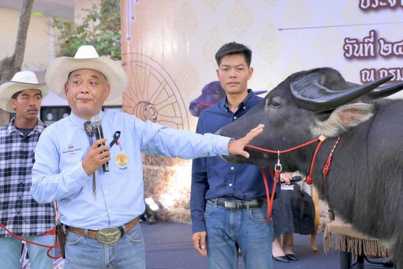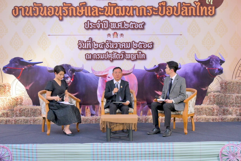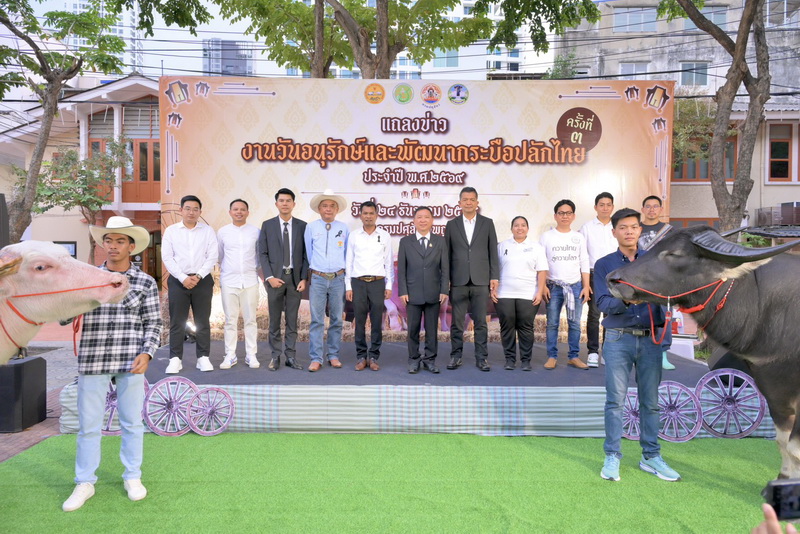 แถลงข่าวการจัดงานวันอนุรักษ์และพัฒนากระบือปลักไทย ประจำปี พ.ศ. 2569 ภายใต้หลัก "ปรัชญาของเศรษฐกิจพอเพียง และการอนุรักษ์สายพันธุ์กระบือปลักไทย" พร้อมด้วยผู้บริหารกรมปศุสัตว์ สื่อมวลชน และผู้ที่เกี่ยวข้อง เข้าร่วมฯ เพื่อประชาสัมพันธ์โครงการจัดงานวันอนุรักษ์และพัฒนากระบือปลักไทย ประจำปี พ.ศ. 2569 ที่กำหนดจัดขึ้นในระหว่างวันที่ 13 - 14 มกราคม 2569 ณ ศูนย์วิจัยและพัฒนาโคนม อำเภอปากช่อง จังหวัดนครราชสีมา โดยการแถลงข่าวในครั้งนี้ มีการจัดแสดงพันธุ์กระบือปลักไทย และผลิตภัณฑ์จากกระบือ ณ ลานเอนกประสงค์ หน้าตึกอำนวยการ กรมปศุสัตว์ พญาไท กรุงเทพมหานครนายสัตวแพทย์สมชวน รัตนมังคลานนท์ อธิบดีกรมปศุสัตว์ กล่าวว่า ตามที่พระบาทสมเด็จพระเจ้าอยู่หัว ทรงพระกรุณาโปรดเกล้าโปรดกระหม่อมให้ดำเนินโครงการอนุรักษ์และพัฒนากระบือไทย โดยมีวัตถุประสงค์เพื่อพัฒนาสายพันธุ์กระบือปลักไทยให้มีลักษณะดี มีคุณภาพ เพิ่มจำนวนกระบือ อันจะเป็นการเพิ่มรายได้ให้เกษตรกร ส่งเสริมและอนุรักษ์ภูมิปัญญาท้องถิ่นไทย โดยใช้วิถีชีวิตแบบดั้งเดิมที่นำกระบือไปใช้ประโยชน์ในการทำการเกษตร ต่อยอดการทำเกษตรทฤษฎีใหม่ ภายใต้หลักปรัชญาของเศรษฐกิจพอเพียง และการอนุรักษ์สายพันธุ์กระบือปลักไทย กรมปศุสัตว์ได้สนองพระราชดำริร่วมดำเนินโครงการอนุรักษ์และพัฒนากระบือไทย โดยดำเนินการบริการผสมเทียมกระบือที่มีความพร้อมโดยใช้น้ำเชื้อกระบือพ่อพันธุ์ชั้นดีของกรมปศุสัตว์ และสนับสนุนพ่อพันธุ์กระบือปลักไทยในการคุมฝูงและปรับปรุงสายพันธุ์ในฝูงกระบือของเกษตรกรที่เข้าร่วมโครงการ ปัจจุบันมีกระบือตั้งท้องจากการผสมเทียมและใช้พ่อพันธุ์คุมฝูง จำนวนกว่า 400 ตัว และมีลูกกระบือเกิดใหม่มากกว่า 500 ตัว สำหรับงานวันอนุรักษ์และพัฒนากระบือปลักไทย ประจำปี พ.ศ. 2569 กำหนดจัดงานจริง ในระหว่างวันที่ 13 - 14 มกราคม 2569 ณ ศูนย์วิจัยและพัฒนาโคนม อำเภอปากช่อง จังหวัดนครราชสีมา มีวัตถุประสงค์