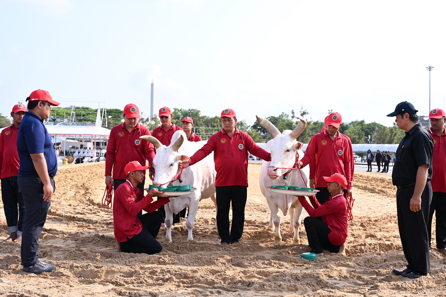 วันจันทร์ที่ 27 เมษายน 2569 เวลา 07.00 น. กรมปศุสัตว์โดย นายพงษ์พันธ์ ธรรมมา และ นายสัตวแพทย์มนัส เทพรักษ์ รองอธิบดีกรมปศุสัตว์ เข้าร่วมการฝึกซ้อมย่อยในหน้าที่คู่เคียงพระยาแรกนา โดยมีนายวิณะโรจน์ ทรัพย์ส่งสุข ปลัดกระทรวงเกษตรและสหกรณ์ ทำหน้าที่พระยาแรกนา พร้อมด้วยเทพีคู่หาบทอง เทพีคู่หาบเงิน และคู่เคียงพระยาแรกนา เข้าร่วมการฝึกซ้อมฯ เพื่อเตรียมความพร้อมสำหรับพระราชพิธีพืชมงคลจรดพระนังคัลแรกนาขวัญ ประจำปี 2569 ณ มณฑลพิธีท้องสนามหลวง กรุงเทพมหานคร