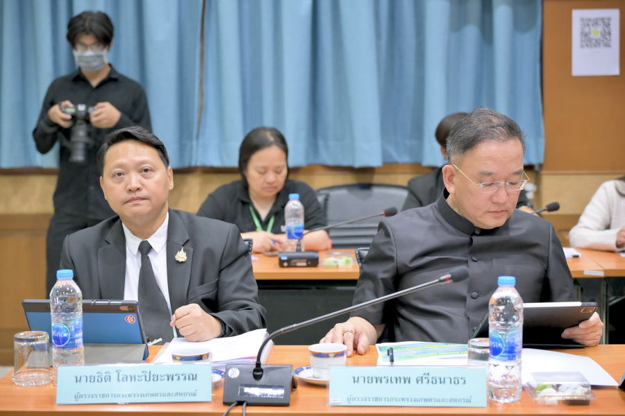 วันศุกร์ที่ 26 ธันวาคม 2568 เวลา 09:30 น. นายสัตวแพทย์สมชวน รัตนมังคลานนท์ อธิบดีกรมปศุสัตว์ มอบหมายให้ นายสัตวแพทย์มนัส เทพรักษ์ รองอธิบดีกรมปศุสัตว์ พร้อมเจ้าหน้าที่ที่เกี่ยวข้อง เข้าร่วมประชุมเพื่อนำเสนอรายละเอียดโครงการตามแผนตรวจราชการของผู้ตรวจราชการกระทรวงเกษตรและสหกรณ์ ปีงบประมาณ 2569 เพื่อให้การตรวจราชการของผู้ตรวจราชการกระทรวงเกษตรและสหกรณ์ เป็นไปอย่างมีประสิทธิภาพ และสอดคล้องกับวัตถุประสงค์ของโครงการ โดยขอความอนุเคราะห์หน่วยงานพิจารณาทบทวนข้อมูล แผนงาน/โครงการ รวมทั้งประเด็นที่ต้องการให้ผู้ตรวจราชการฯ เร่งติดตาม โดยมีนางสาวอิงอร ปัญญากิจ หัวหน้าผู้ตรวจราชการกระทรวงเกษตรและสหกรณ์ เป็นประธานการประชุม ณ ห้องประชุมไชยยงค์ ชูชาติ สำนักงานปฏิรูปที่ดินเพื่อเกษตรกรรม ถนนราชดำเนินภาพ : คุณกิตติพรรณ จินดามัง / ข่าว : ทีมงานรองอธิบดีกรมปศุสัตว์ (นายสัตวแพทย์มนัส เทพรักษ์)