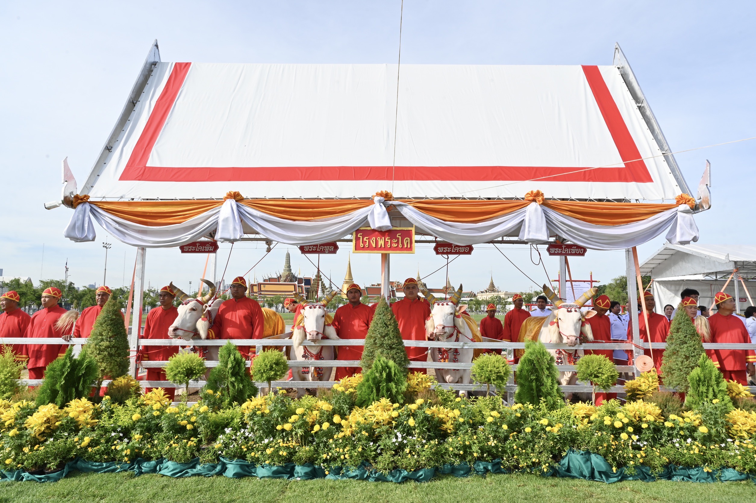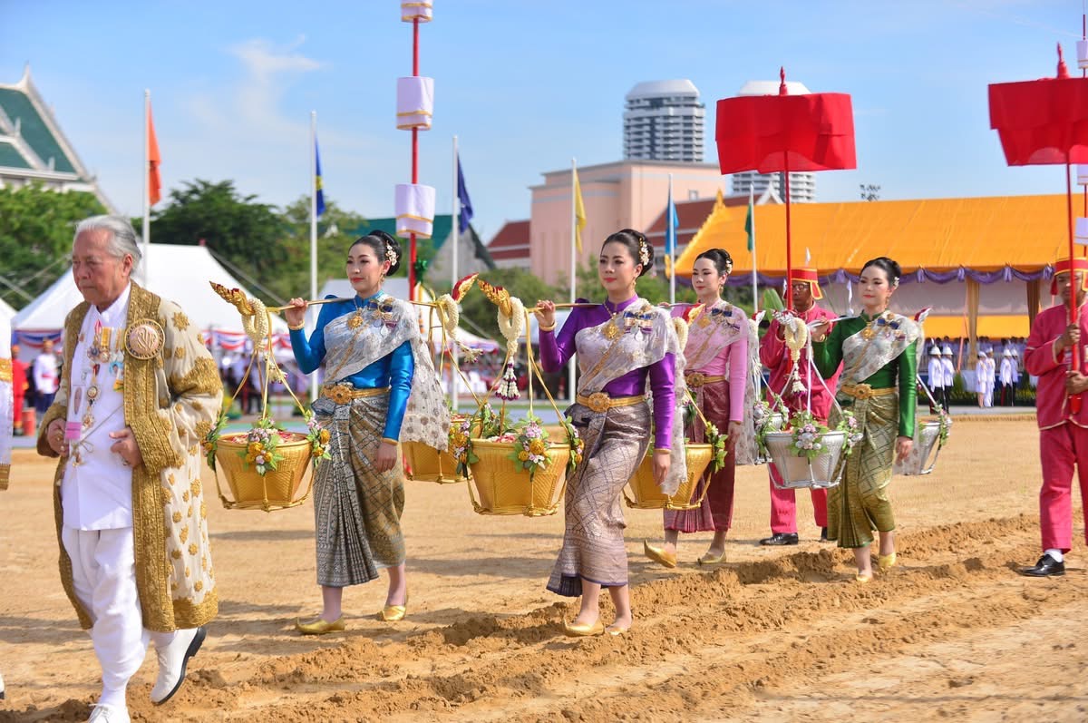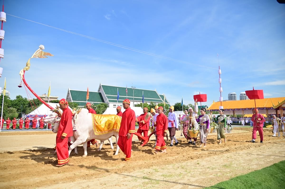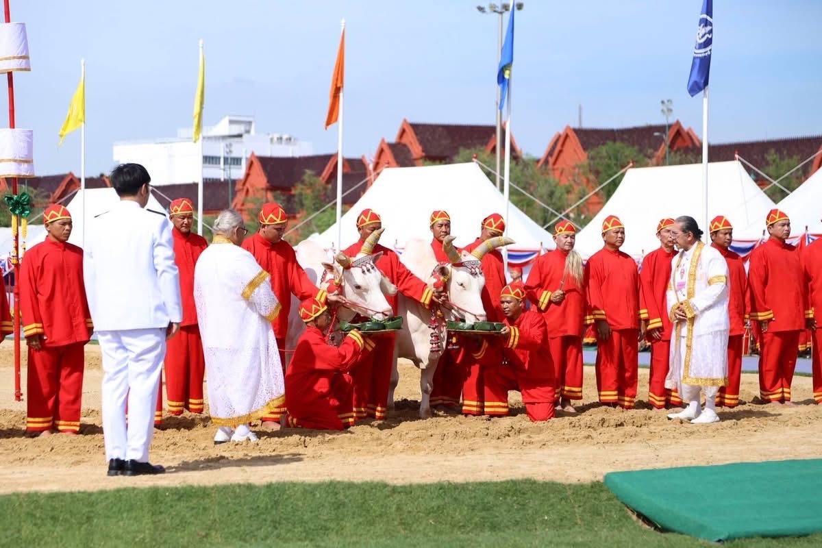 พระบาทสมเด็จพระเจ้าอยู่หัว และสมเด็จพระนางเจ้าฯ พระบรมราชินีพิธีเป็นองค์ประธานฯ ในงานพระราชพิธีพืชมงคลจรดพระนังคัลแรกนาขวัญ ปีพุทธศักราช 2568