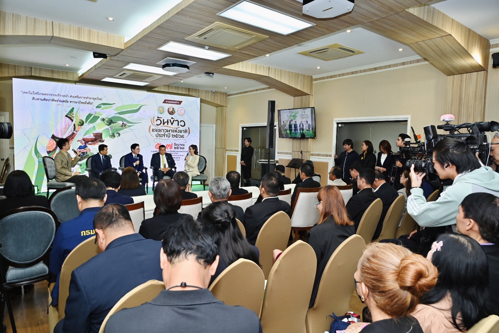 วันพฤหัสบดีที่ 29 พฤษภาคม 2568 นายสัตวแพทย์สมชวน รัตนมังคลานนท์ อธิบดีกรมปศุสัตว์ มอบหมายให้ สัตวแพทย์หญิงบุณิกา จุลละโพธิ เลขานุการกรม ร่วมงานแถลงข่าวงานวันข้าวและชาวนาแห่งชาติ ประจำปี 2568 โดยมี นายอัครา พรหมเผ่า รัฐมนตรีช่วยว่าการกระทรวงเกษตรและสหกรณ์ เป็นประธานในครั้งนี้ พร้อมรับชมการแสดง ทำนายุคใหม่ สืบสานศิลป์ไทย ด้วยหัวใจแห่งผืนดิน ณ ห้องประชุม 115 กระทรวงเกษตรและสหกรณ์ กรุงเทพฯ