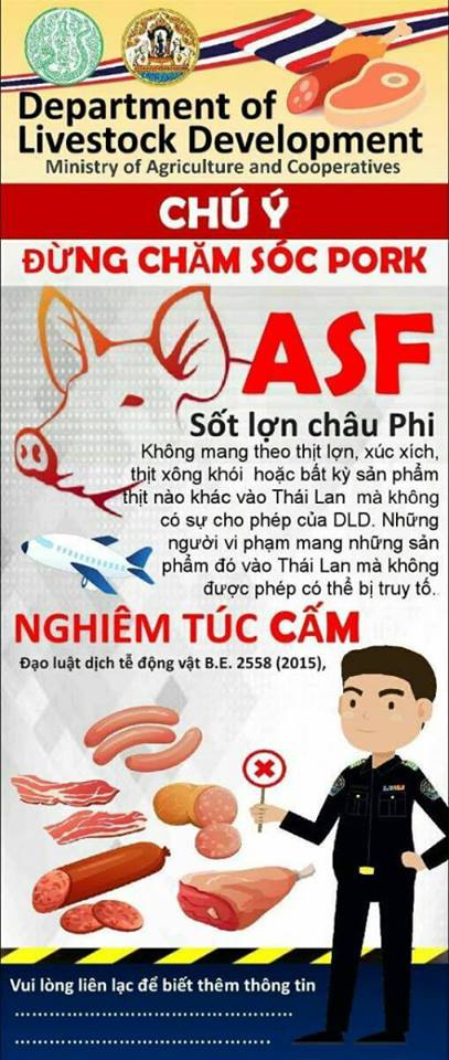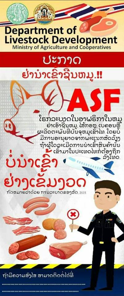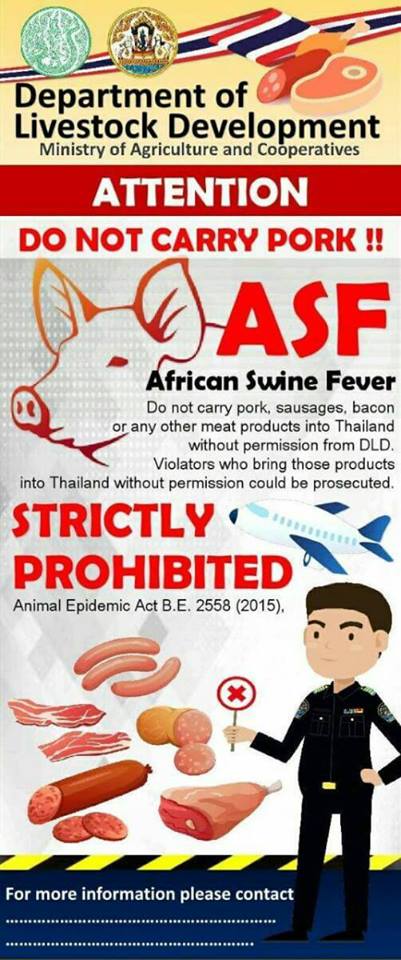 กรมปศุสัตว์...ออกโปสเตอร์ 5 ภาษาสื่อนักเดินทางห้ามนำผลิตภัณฑ์จากเนื้อสุกรเข้าประเทศไทย ก่อนหน้า ต่อไป