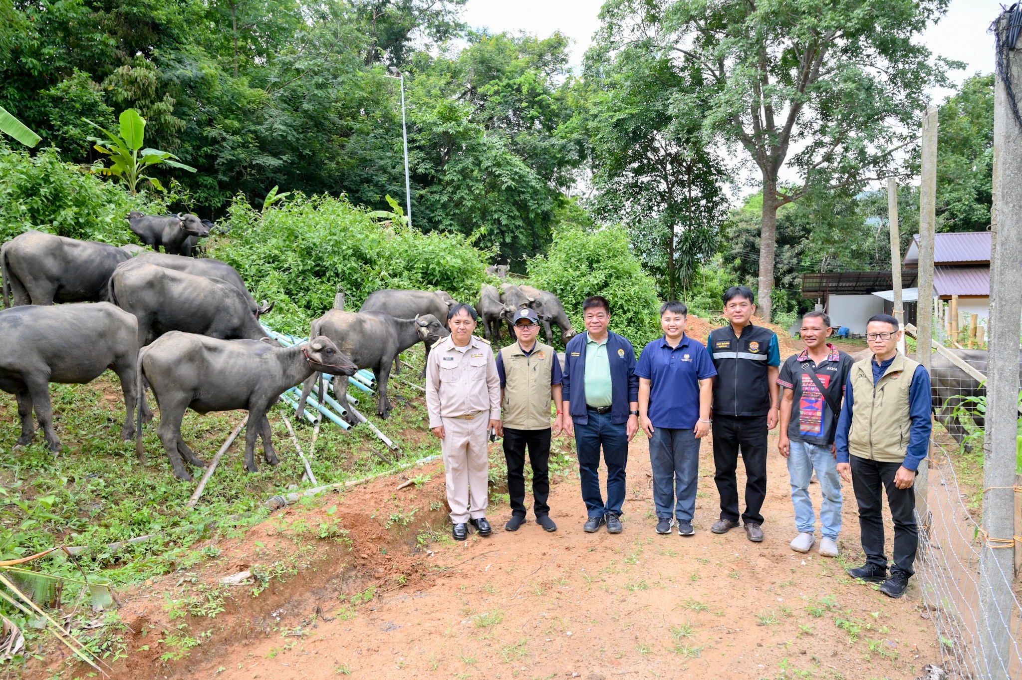 วันที่ 18 มิถุนายน 2568 นายพงษ์พันธ์ ธรรมมา รองอธิบดีกรมปศุสัตว์ พร้อมด้วย นายพืชผล น้อยนาฝาย ปศุสัตว์เขต 5 นายอนุสรณ์ รัฐอนันต์พินิจ ปศุสัตว์จังหวัดเชียงราย นายธีรวิทย์ ขาวบุบผา ผู้อำนวยการกองงานพระราชดำริและกิจกรรมพิเศษ และเจ้าหน้าที่ที่เกี่ยวข้อง ลงพื้นติดตามให้คำแนะนำการเลี้ยงกระบือนม ของโครงการพัฒนาพื้นที่ดอยตุง อำเภอแม่ฟ้าหลวง จังหวัดเชียงราย มูลนิธิแม่ฟ้าหลวง โดยกรมปศุสัตว์ได้สนับสนุนกระบือนม จำนวน 42 ตัว (พันธุ์เมซานี จำนวน 13 ตัว และกระบือนมมูร่าห์ 29 ตัว) เพื่อส่งเสริมการสร้างอาชีพและรายได้ให้กับเกษตรกร