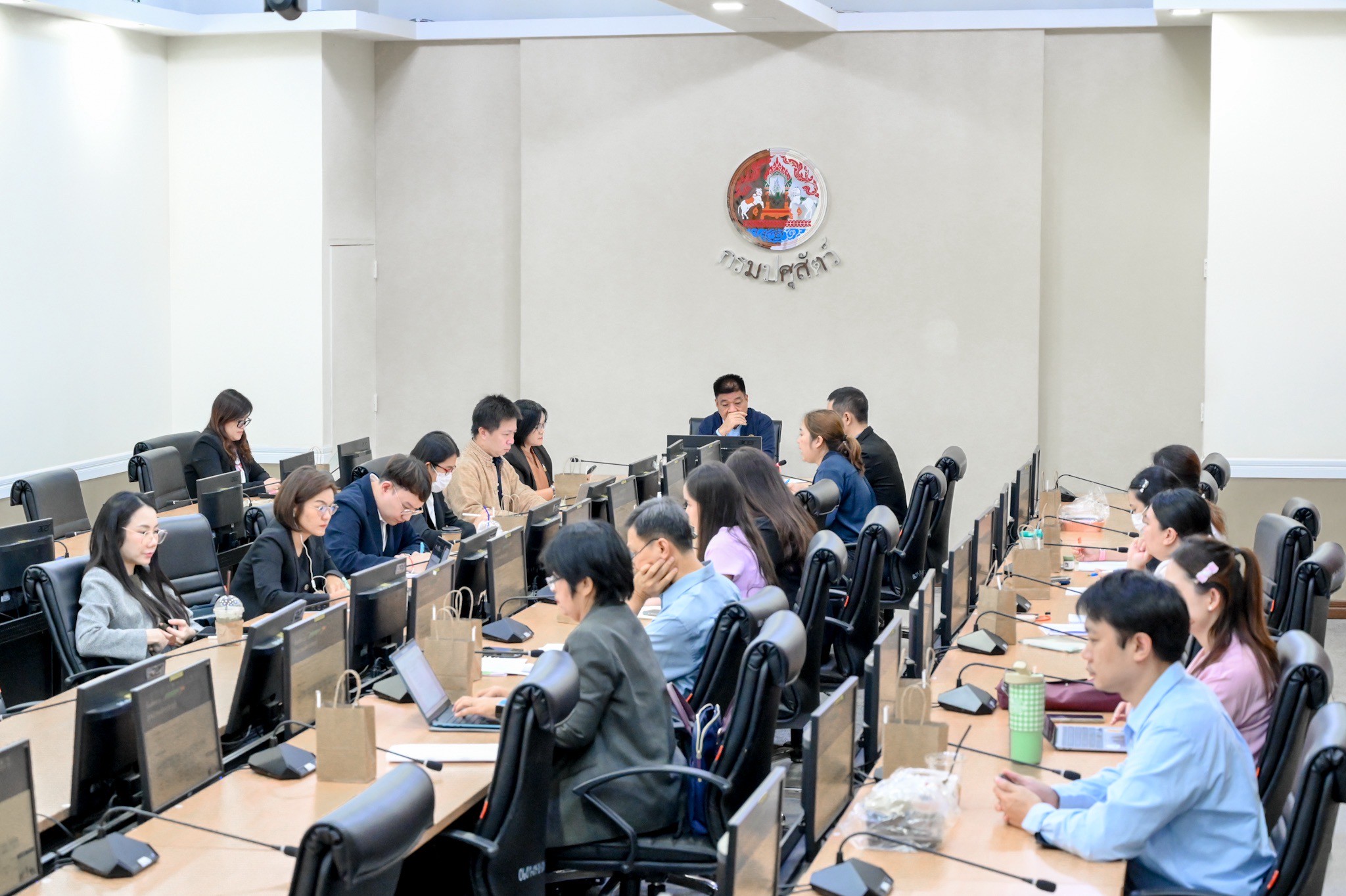วันที่ 26 มิถุนายน 2568 เวลา 14.00 น. นายพงษ์พันธ์ ธรรมมา รองอธิบดีกรมปศุสัตว์ เป็นประธานในการประชุมคณะกรรมการอำนวยการจัดการประชุมคณะทำงานปศุสัตว์อาเซียน (ASEAN Sectoral Working Group on Livestock; ASWGL) ครั้งที่ 33 การประชุมผู้ประสานงานแห่งชาติด้านผลิตภัณฑ์ทางสัตวแพทย์แห่งอาเซียน (ASEAN National Focal Point on Veterinary Products; ANFPVP) ครั้งที่ 12 และการประชุมอื่นๆ ที่เกี่ยวข้อง โดยมีนายเชาวฤทธิ์ บุญมาทิต ผู้อำนวยการกองแผนงาน นางสาวจุฬาพร ศรีหนา ผู้เชี่ยวชาญด้านพัฒนาระบบและรับรองคุณภาพอาหารสัตว์อุตสาหกรรม นางวรางคณา โตโรส ผู้เชี่ยวชาญด้านเศรษฐกิจการปศุสัตว์ นายอำพล วริทธิธรรม ผู้อำนวยการกองผลิตภัณฑ์ปศุสัตว์ เจ้าหน้าที่สำนักงานมาตรฐานสินค้าเกษตรและอาหารแห่งชาติ และเจ้าหน้าที่กรมปศุสัตว์ที่เกี่ยวข้องเข้าร่วมประชุมฯ ณ ห้องประชุมพระพิรุณ ตึกอำนวยการ กรมปศุสัตว์ พญาไท และผ่านระบบออนไลน์