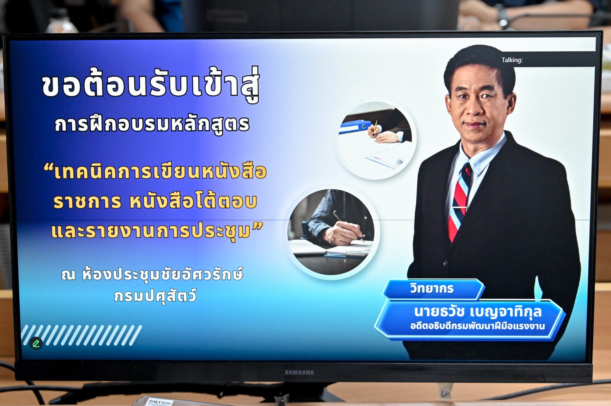 วันที่ 16 กรกฎาคม 2568 เวลา 09.00น. นายพงษ์พันธ์ ธรรมมา รองอธิบดีกรมปศุสัตว์ เป็นประธานพิธีเปิดโครงการฝึกอบรมหลักสูตร “ เทคนิคการเขียนหนังสือราชการ หนังสือโต้ตอบและรายงานการประชุม” ในการฝึกอมรมครั้งนี้จะเกิดประโยชน์ ผู้เข้าฝึกอบรมได้รับทักษะ ความรู้และแนวทางในการเขียนหนังสือราชการ สามารถนำไปปรับใช้ในการปฏิบัติงานได้อย่างมีประสิทธิภาพ โดยมีนายธวัช เบญจาทิกุล อดีตอธิบดีกรมพัฒนาฝีมือแรงงาน เป็นวิทยากรในครั้งนี้ ณ ห้องประชุมชัยอัศวรักษ์ กรมปศุสัตว์และประชุมทางไกลผ่านระบบ Zoom Meeting