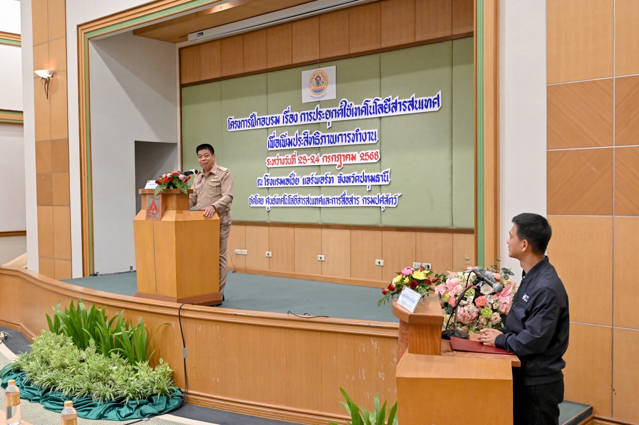 วันที่ 23 กรกฎาคม 2568 เวลา 08.30น. นายสัตวแพทย์สมชวน รัตนมังคลานนท์ อธิบดีกรมปศุสัตว์ มอบหมายให้ นายพงษ์พันธ์ ธรรมมา รองอธิบดีกรมปศุสัตว์ เป็นประธานพิธีเปิด โครงการฝึกอบรม เรื่อง การประยุกต์ใช้เทคโนโลยีสารสนเทศเพื่อเพิ่มประสิทธิภาพการทำงาน ณ โรงแรมเอเชียแอร์พอร์ต จ.ปทุมธานี ซึ่งโครงการนี้จัดขึ้นเพื่อให้ความรู้ในเรื่องการรักษาความมั่นคงปลอดภัยทางไซเบอร์ (Cybersecurity) ในการปฏิบัติงาน การบริหารจัดการข้อมูลเกษตรกรผู้เลี้ยงสัตว์อย่างมีประสิทธิภาพ และการประยุกต์ใช้ AI ในการปฏิบัติงานแก่เจ้าหน้าที่ส่วนกลางและส่วนภูมิภาคที่ปฏิบัติงานด้านเทคโนโลยีสารสนเทศ โดยมี นายสัตวแพทย์กิติกรณ์ เจนไพบูลย์ ผู้อำนวยการศูนย์เทคโนโลยีสารสนเทศและการสื่อสาร เจ้าหน้าที่ศูนย์เทคโนโลยีสารสนเทศและการสื่อสาร และเจ้าหน้าที่ระบบงานคอมพิวเตอร์ของสำนักงานปศุสัตว์เขต และสำนักงานปศุสัตว์จังหวัด เข้าร่วมพิธีเปิดครั้งนี้