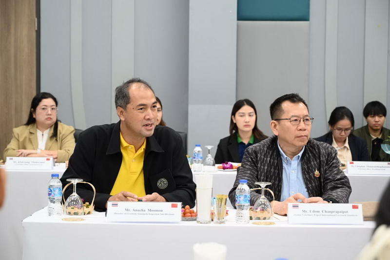 วันจันทร์ที่ 21 กรกฎาคม 2568 เวลา 08.30 น. นายสัตวแพทย์สมชวน รัตนมังคลานนท์ อธิบดีกรมปศุสัตว์ มอบหมายให้นายสัตวแพทย์รักไทย งามภักดิ์ รองอธิบดีกรมปศุสัตว์ เป็นประธานฝ่ายไทยให้การต้อนรับเจ้าหน้าที่คณะผู้ตรวจจากหน่วยงาน สำนักงานการศุลกากรแห่งสาธารณรัฐประชาชนจีน (GACC) สาธารณรัฐประชาชนจีน ในโอกาสเข้าตรวจประเมินโรงฆ่าและชำแหละสัตว์ปีก จำนวน 10 แห่ง ในระหว่างวันที่ 21 - 27 กรกฎาคม 2568 โดยมีนายสัตวแพทย์ยุทธนา โสภี ผู้อำนวยการสำนักพัฒนาระบบและรับรองมาตรฐานสินค้าปศุสัตว์ และผู้แทนจากสำนักพัฒนาระบบและรับรองมาตรฐานสินค้าปศุสัตว์ ผู้แทนจากสำนักควบคุม ป้องกัน และบำบัดโรคสัตว์ ผู้แทนจากกองสารวัตรและกักกัน ผู้แทนจากกองความร่วมมือด้านการปศุสัตว์ระหว่างประเทศ ผู้แทนจากสถาบันสุขภาพสัตว์แห่งชาติ ร่วมกับ สำนักงานที่ปรึกษาการเกษตรต่างประเทศ ประจำกรุงปักกิ่ง (สปษ.ปักกิ่ง) เข้าร่วมให้การต้อนรับ ณ ห้องประชุมบริษัท ไทยฟู้ดส์ กรุ๊ป จำกัด (มหาชน) (EST.119) จ.กาญจนบุรี