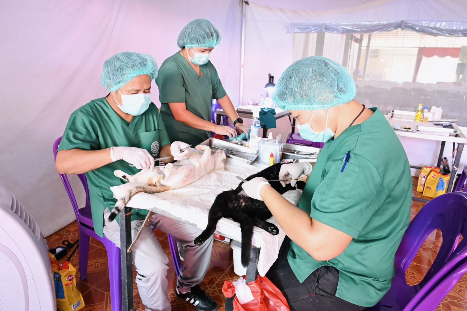 “การทำหมันสุนัขและแมวถือเป็นมาตรการสำคัญในการลดจำนวนประชากรสัตว์ที่ไร้ที่พึ่ง ซึ่งจะช่วยลดโอกาสการแพร่เชื้อระหว่างสัตว์สู่สัตว์ และจากสัตว์สู่คน อีกทั้งยังส่งเสริมสวัสดิภาพสัตว์ และสร้างความปลอดภัยให้กับพี่น้องประชาชน และเพื่อให้ประเทศไทย ปลอดจากโรคพิษสุนัขบ้า ตามพระปณิธานฯ โดยตั้งเป้าหมายขยายผลโครงการดังกล่าวเพิ่มขึ้นอีก 30% ฟรีไม่เสียค่าใช้จ่าย นอกจากนี้ การดำเนินโครงการได้รับความร่วมมืออย่างดียิ่งจากหน่วยงานราชการในพื้นที่ องค์กรปกครองส่วนท้องถิ่น ภาคเอกชน และประชาชนจิตอาสา ผมขอให้ทุกภาคส่วนร่วมมือกันอย่างต่อเนื่อง ทั้งการฉีดวัคซีนป้องกันโรคพิษสุนัขบ้าให้สัตว์เลี้ยง การดูแลสัตว์ที่มีอยู่ในครัวเรือน และการแจ้งเจ้าหน้าที่เมื่อพบสัตว์จรจัด เพื่อช่วยกันสร้างชุมชนปลอดภัยอย่างแท้จริง“ นายอรรถกร กล่าว