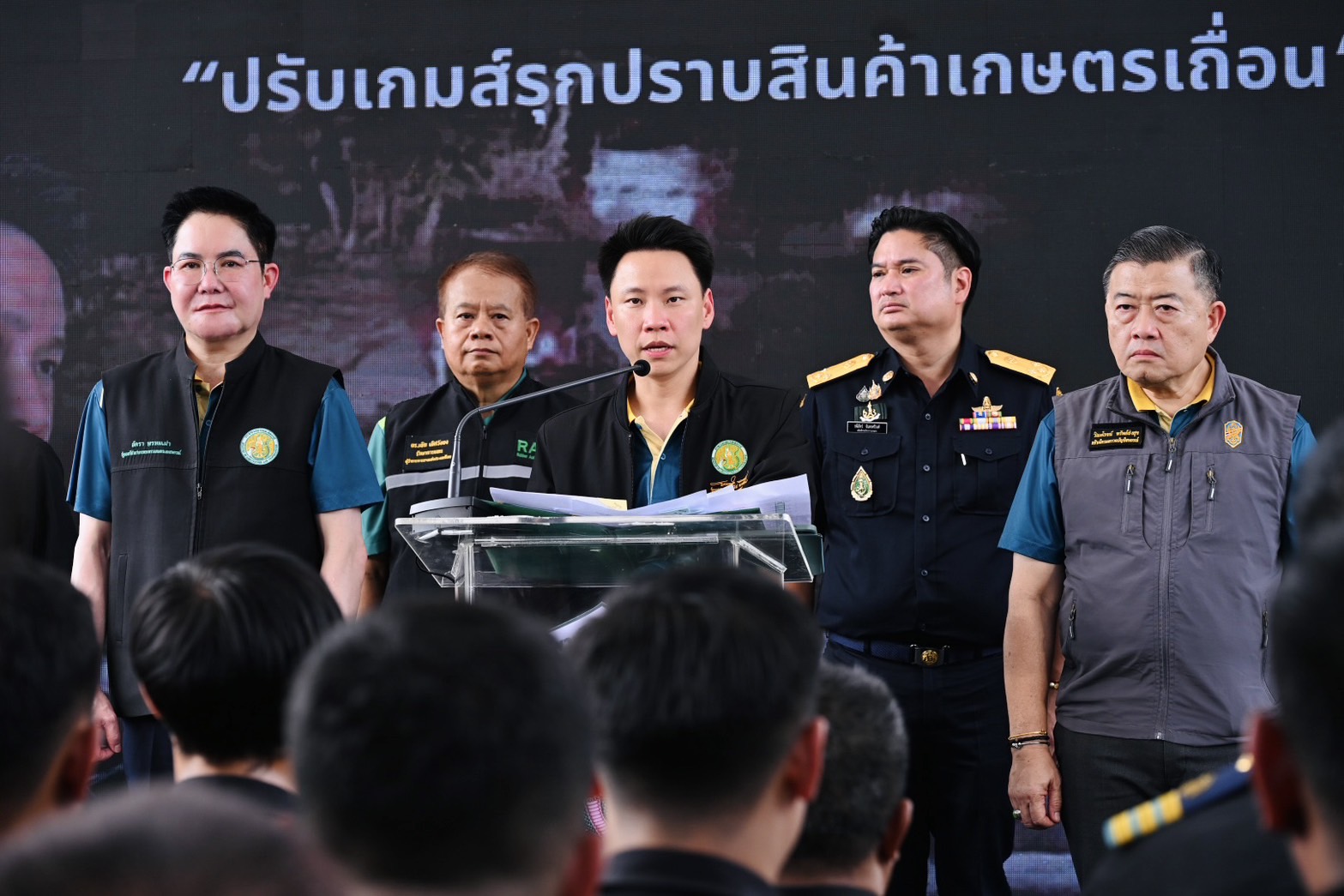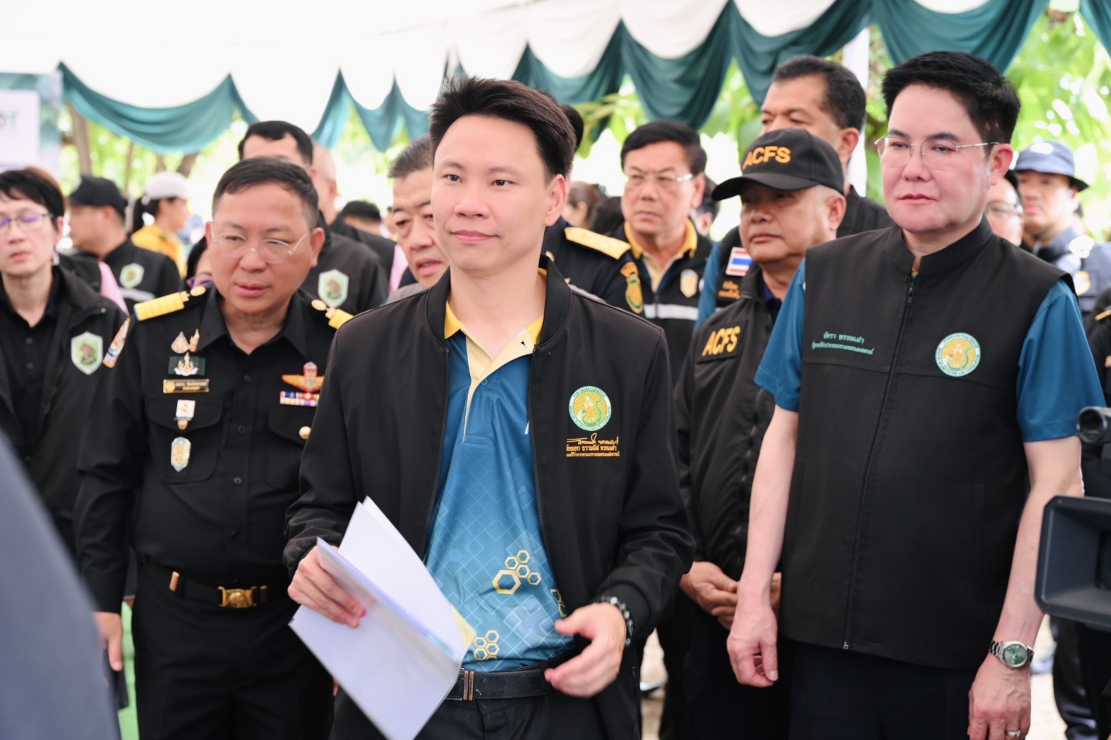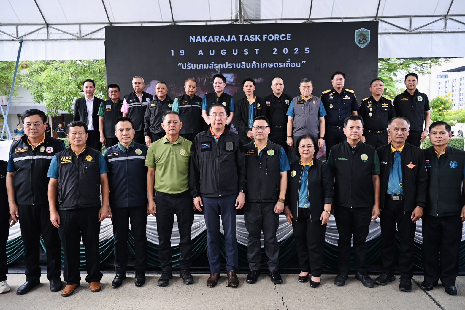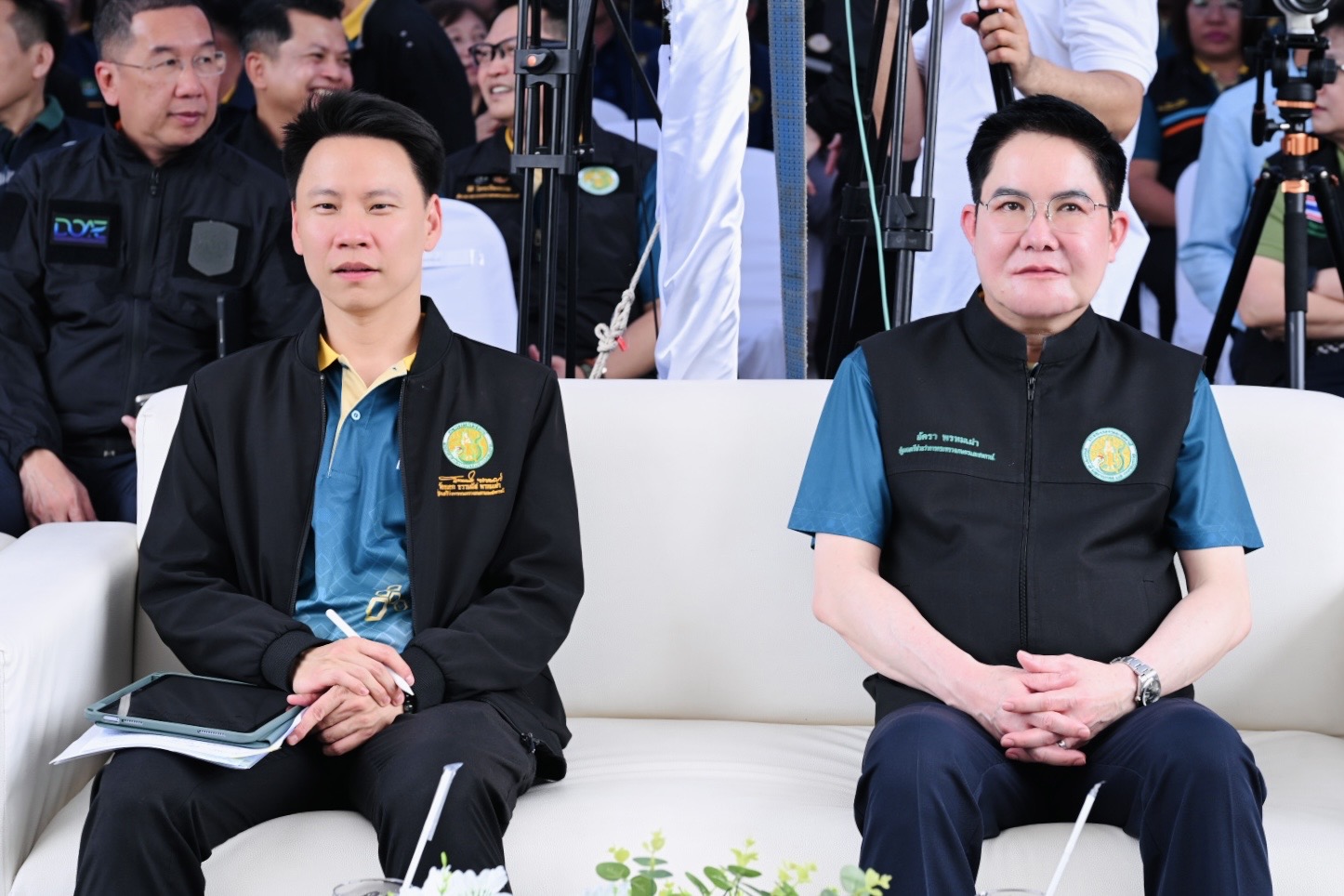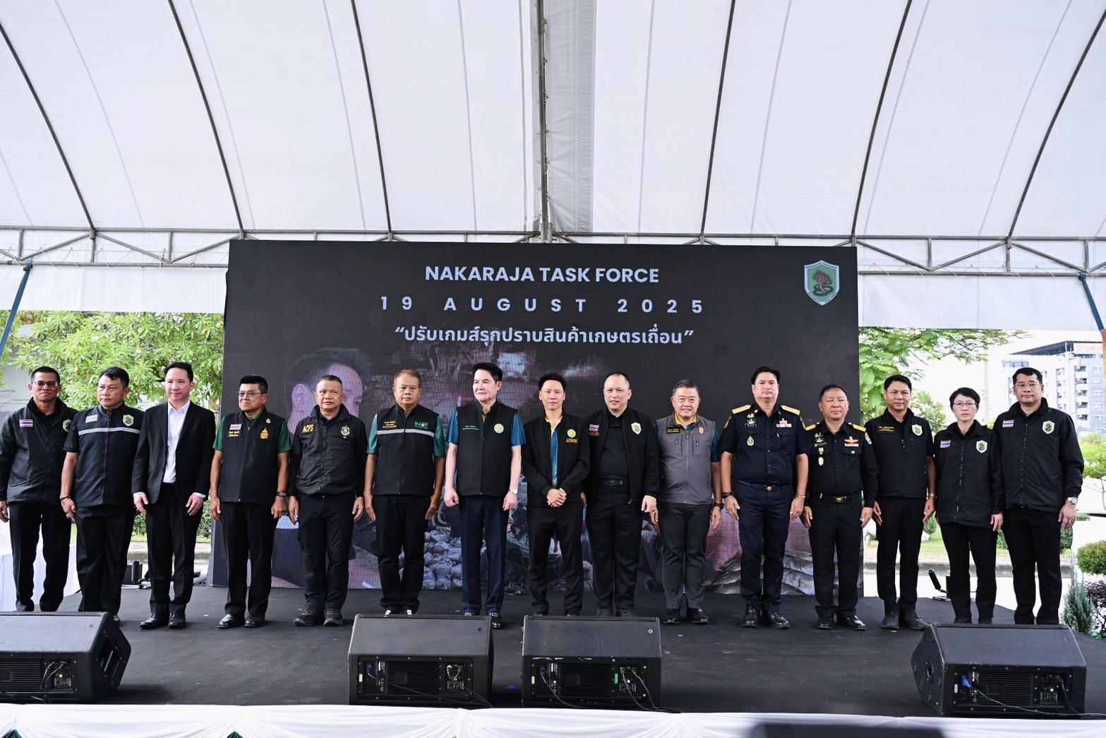 วันอังคารที่ 19 สิงหาคม 2568 เวลา 14.30 น. นายสัตวแพทย์สมชวน รัตนมังคลานนท์ อธิบดีกรมปศุสัตว์ พร้อมด้วยนายสัตวแพทย์บุญญกฤช ปิ่นประสงค์ นายสัตวแพทย์รักไทย งามภักดิ์ รองอธิบดีกรมปศุสัตว์ และคณะผู้บริหารกรมปศุสัตว์ เข้าร่วมงาน “ฉก.พญานาคราช ปรับเกมส์รุก ปราบสินค้าเกษตรเถื่อน” โดยได้รับเกียรติจากนายอรรถกร ศิริลัทธยากร รัฐมนตรีว่าการกระทรวงเกษตรและสหกรณ์ เป็นประธานเปิดงานฯ โดยมีนายอัครา พรหมเผ่า รัฐมนตรีช่วยว่าการกระทรวงเกษตรและสหกรณ์ ผู้บริหารในสังกัดกระทรวงเกษตรและสหกรณ์ และเจ้าหน้าที่ที่เกี่ยวข้อง เข้าร่วมงานฯ ณ ศูนย์ราชการกรมปศุสัตว์ปทุมธานี อำเภอเมืองปทุมธานี จังหวัดปทุมธานี