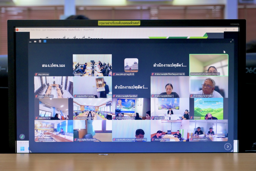วันศุกร์ที่ 12 ธันวาคม 2568 เวลา 13.30 น. นายสัตวแพทย์สมชวน รัตนมังคลานนท์ อธิบดีกรมปศุสัตว์ เป็นประธานการประชุมคณะกรรมการอำนวยการโครงการที่ได้รับการสนับสนุนเงินนอกงบประมาณชนิดสัตว์โคเนื้อ - กระบือ ครั้งที่ 3/2568 พร้อมด้วยผู้บริหารฯ และเจ้าหน้าที่ที่เกี่ยวข้องเข้าร่วมประชุมฯ เพื่อติดตามความก้าวหน้าการเร่งรัดติดตามการชำระหนี้โครงการที่ได้รับการสนับสนุนเงินกู้จากกองทุน FTAณ ห้องพระพิรุณ ชั้น 1 ตึกอำนวยการ กรมปศุสัตว์ และผ่านระบบออนไลน์ Zoom Meeting ภาพ : คุณกิตติพรรณ จินดามัง/ ข่าว : คุณศิริวรรณ ยิ้มช้อย / กลุ่มเผยแพร่ฯ / สลก. / กรมปศุสัตว์