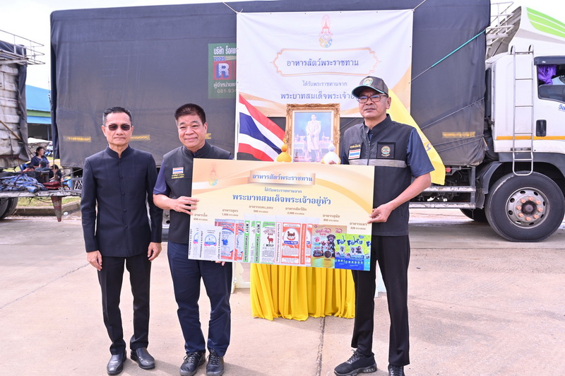 พระบาทสมเด็จพระเจ้าอยู่หัว พระราชทาน อาหารสัตว์เลี้ยงและสัตว์เศรษฐกิจ เพื่อช่วยเหลือเกษตรกรผู้เลี้ยงสัตว์ที่ประสบอุทกภัยในพื้นที่สำนักงานปศุสัตว์เขต 9