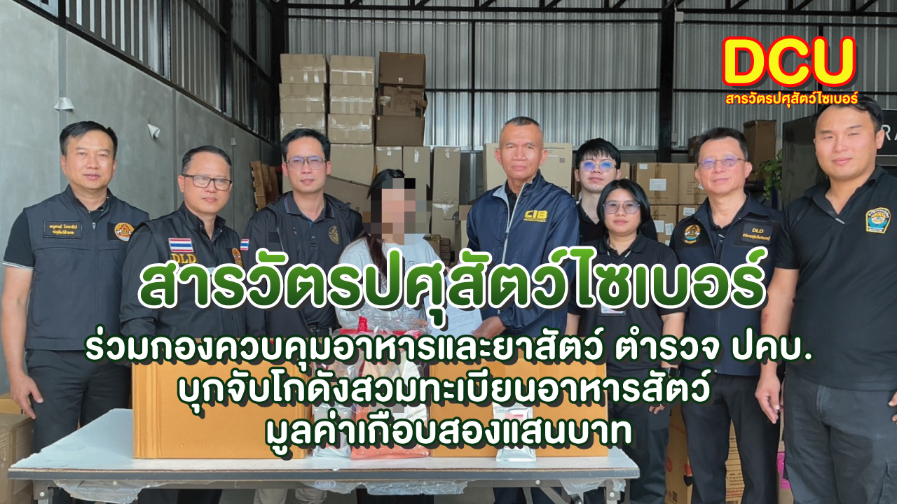 ตามที่สารวัตรปศุสัตว์ไซเบอร์ร่วมกับกองควบคุมอาหารและยาสัตว์ ด่านกักกันสัตว์ดอนเมือง สำนักงานปศุสัตว์จังหวัดนนทบุรี ฝ่ายปกครองอำเภอปากเกร็ด และเจ้าหน้าที่ตำรวจกองกำกับการ 2 กองบังคับการปราบปรามการกระทำความผิดเกี่ยวกับการคุ้มครองผู้บริโภค เข้าตรวจสอบโกดังเก็บสินค้าต้องสงสัยในพื้นที่จังหวัดนนทบุรี ตามที่ได้รับเรื่องร้องเรียนและสืบหาข้อมูลผ่านช่องทางออนไลน์ว่ามีการกระทำความผิดตามกฎหมาย จำหน่ายอาหารสัตว์ไม่มีทะเบียน